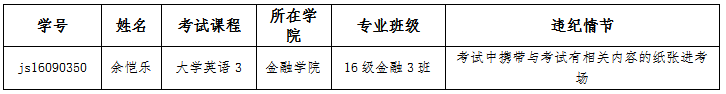 在1月5日2017-2018-1学期期末考试中,余恺乐同学违纪,通报如下: