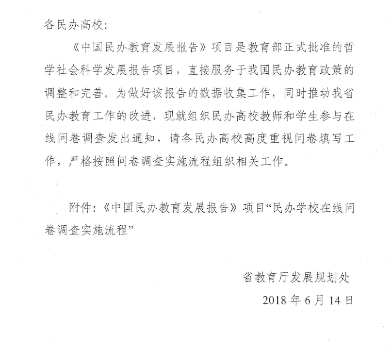 《省教育厅民办教育发展报告民办学校在线问卷调查》