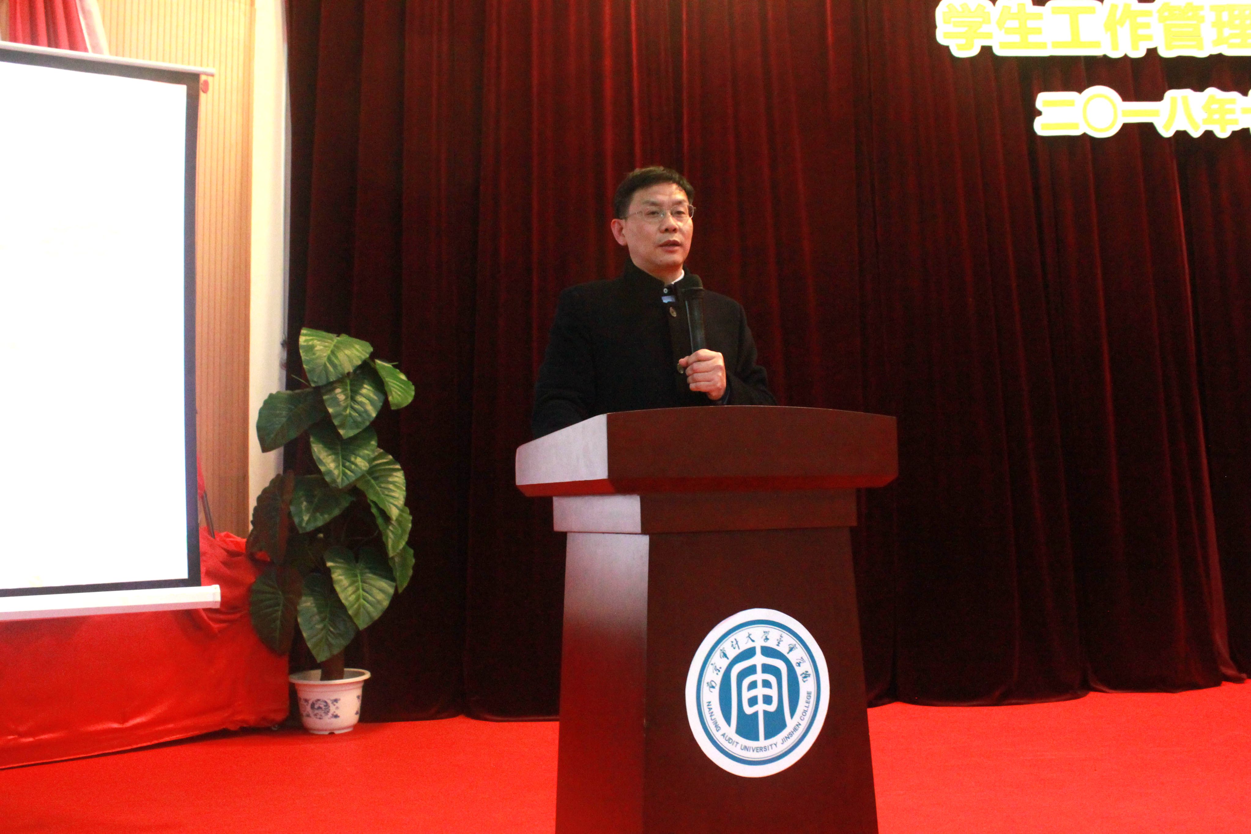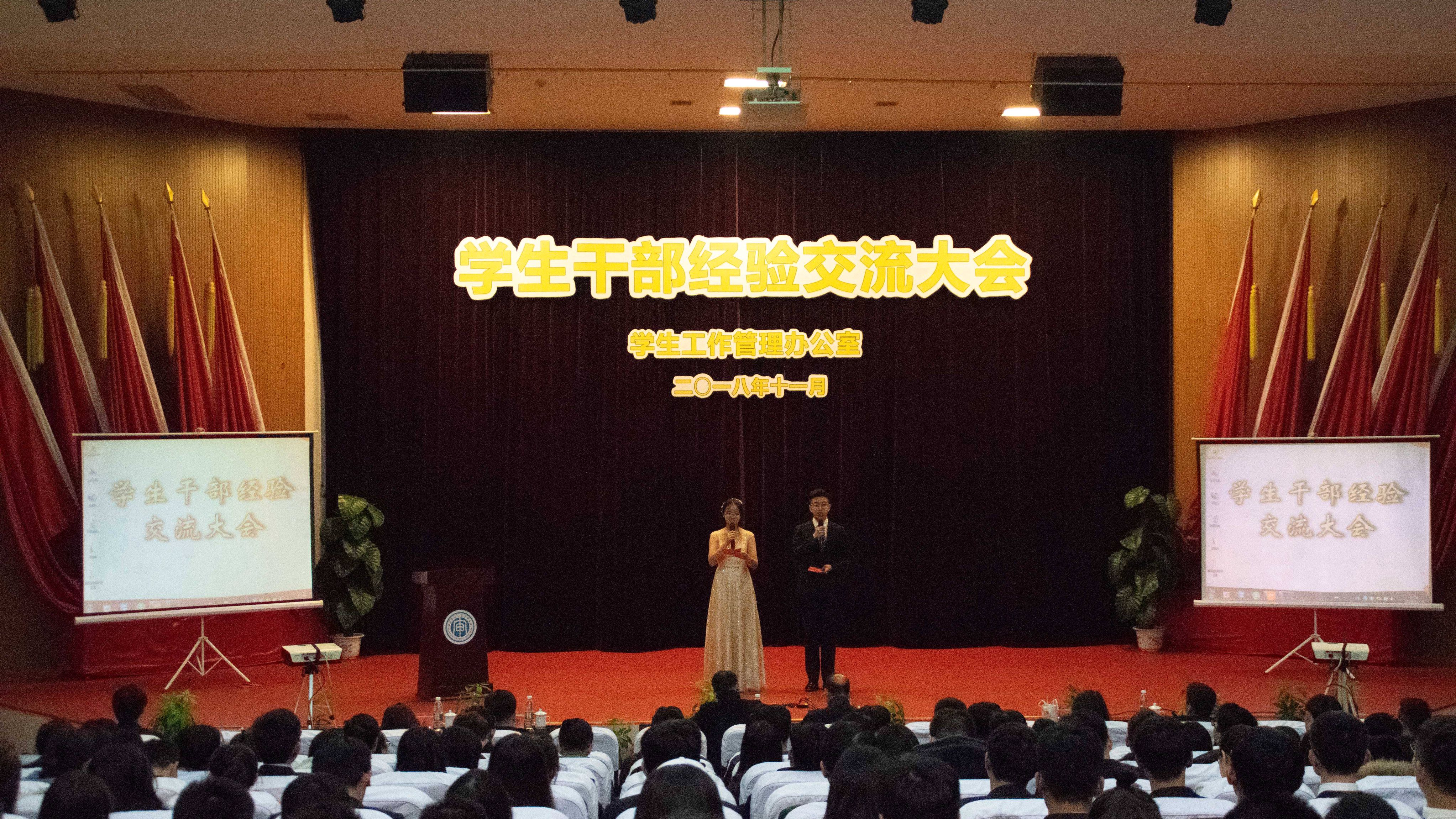 2018年11月29日,我校2018年学生干部经验交流大会在图书馆报告厅隆重举行。副校长沈明、学工处处长李文强以及各二级学院党总支书记及全体辅导员助理、学生社团负责人、各班级班长参加本次大会。