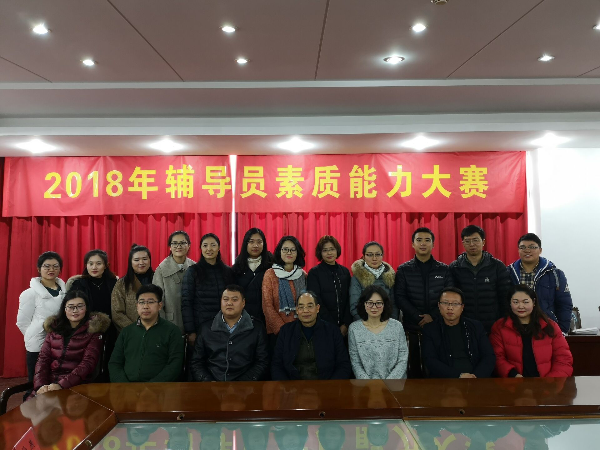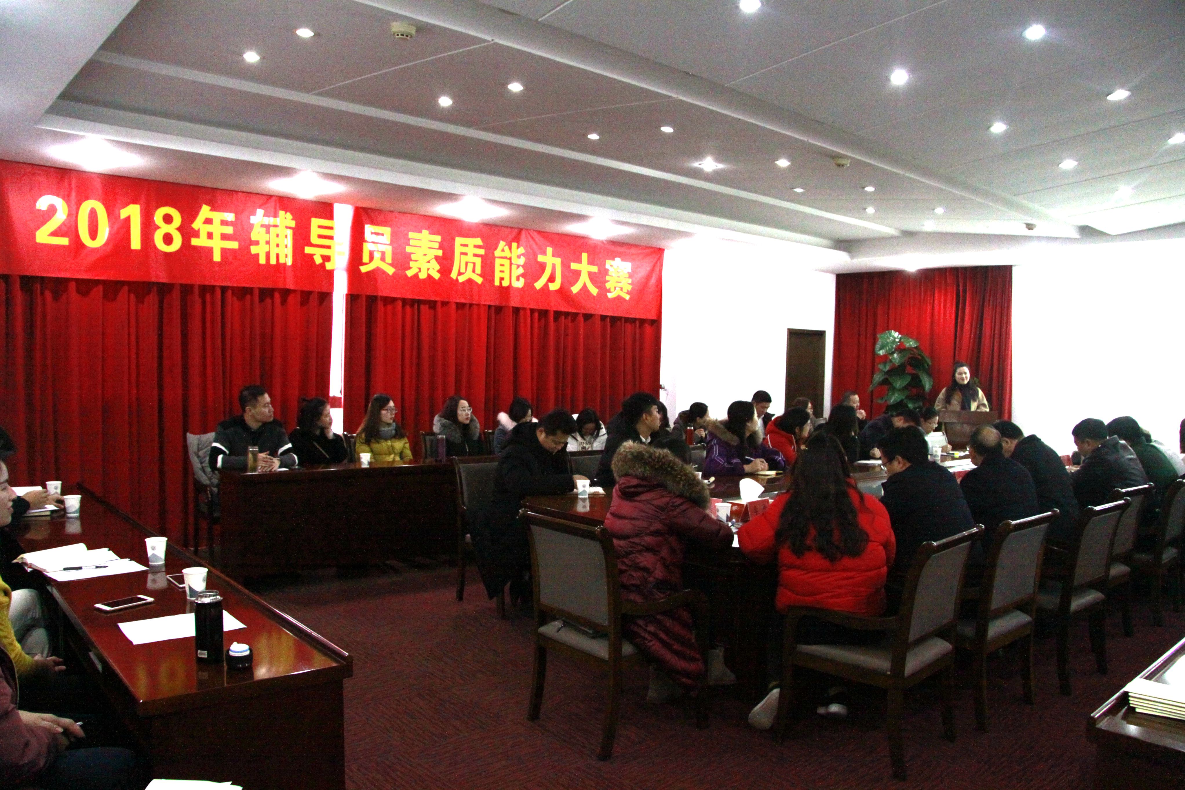 为贯彻全国高校思想政治工作会议精神,落实立德树人根本任务,进一步提升我校辅导员队伍的专业化水平,提高辅导员专业技能,我校学工处组织举行了2018年辅导员素质能力大赛。本次大赛共有30名辅导员参加,初赛包括基础知识测试及主题班会视频评选,根据初赛成绩,12名辅导员晋级决赛。决赛于2019年1月15日在T南302拉开了帷幕。学校副校长沈明、学工处处长李文强、应天职业技术学院江宁校区管委会副主任姜辛以及各二级院书记参加了此次决赛。学校全体辅导员前来观摩,决赛现场座无虚席。