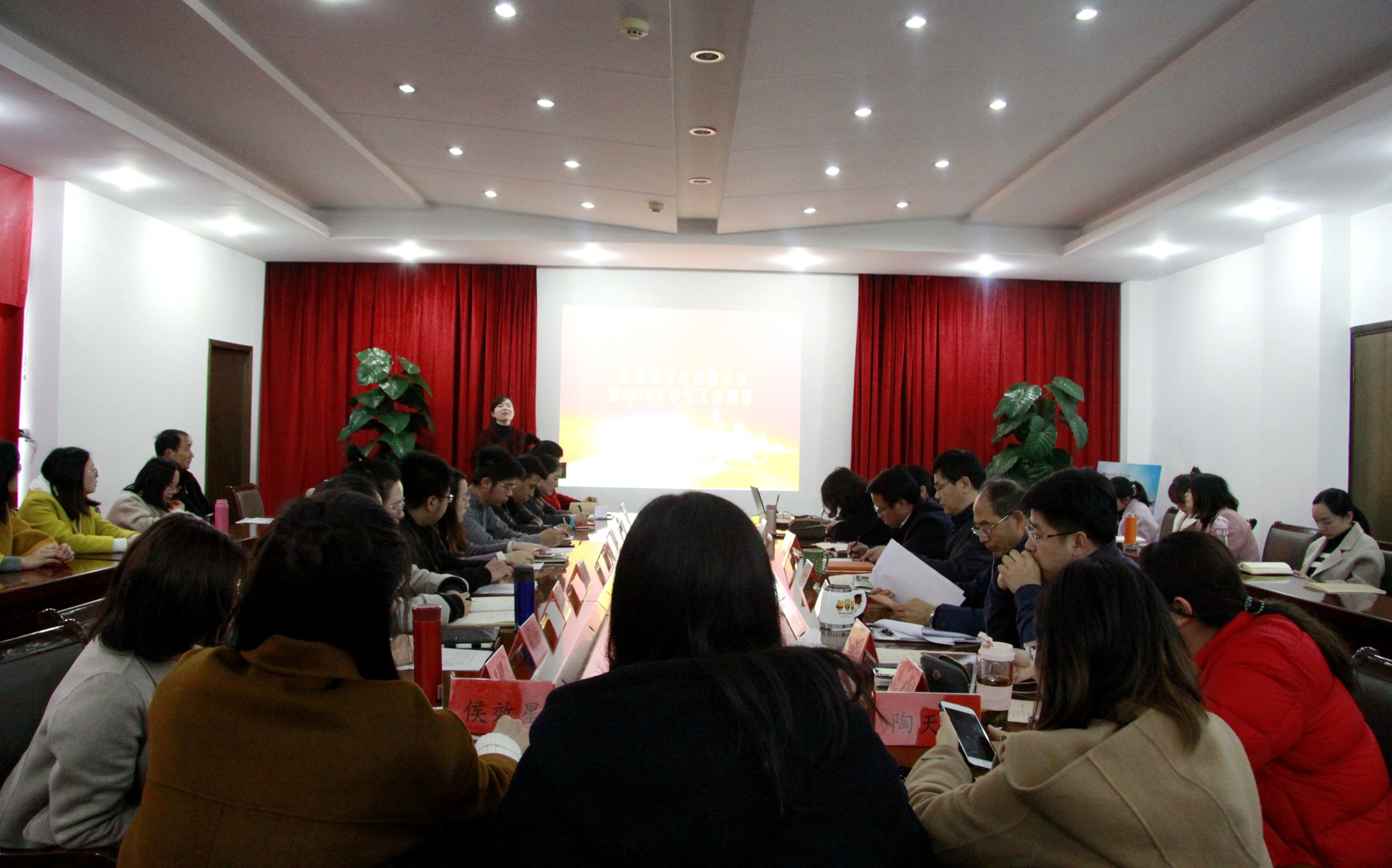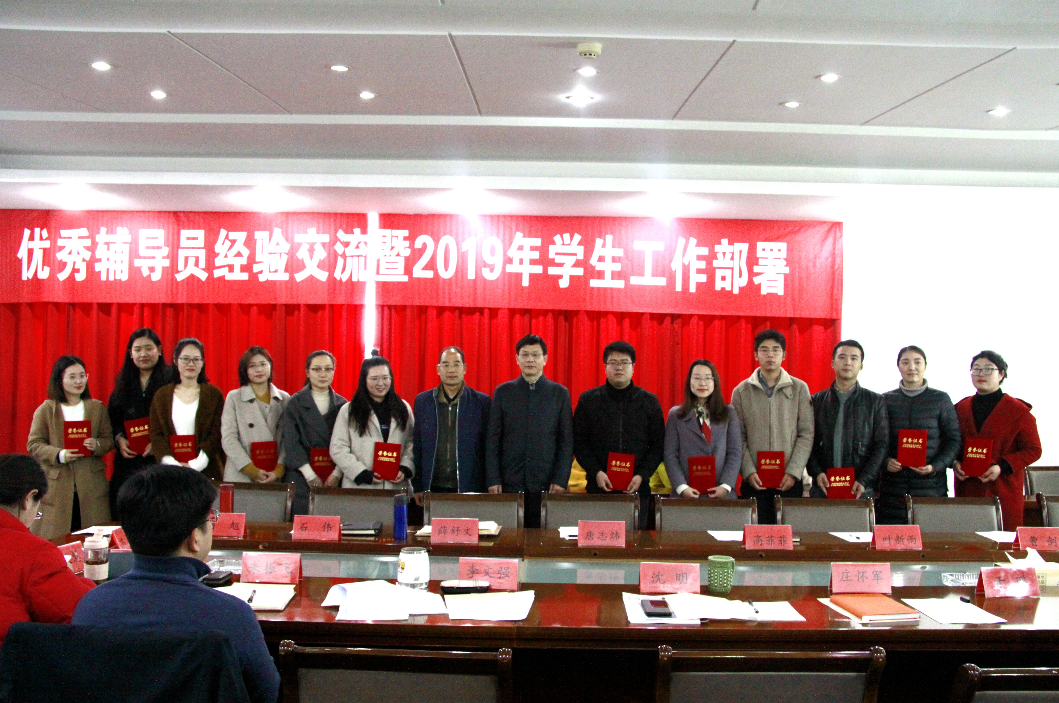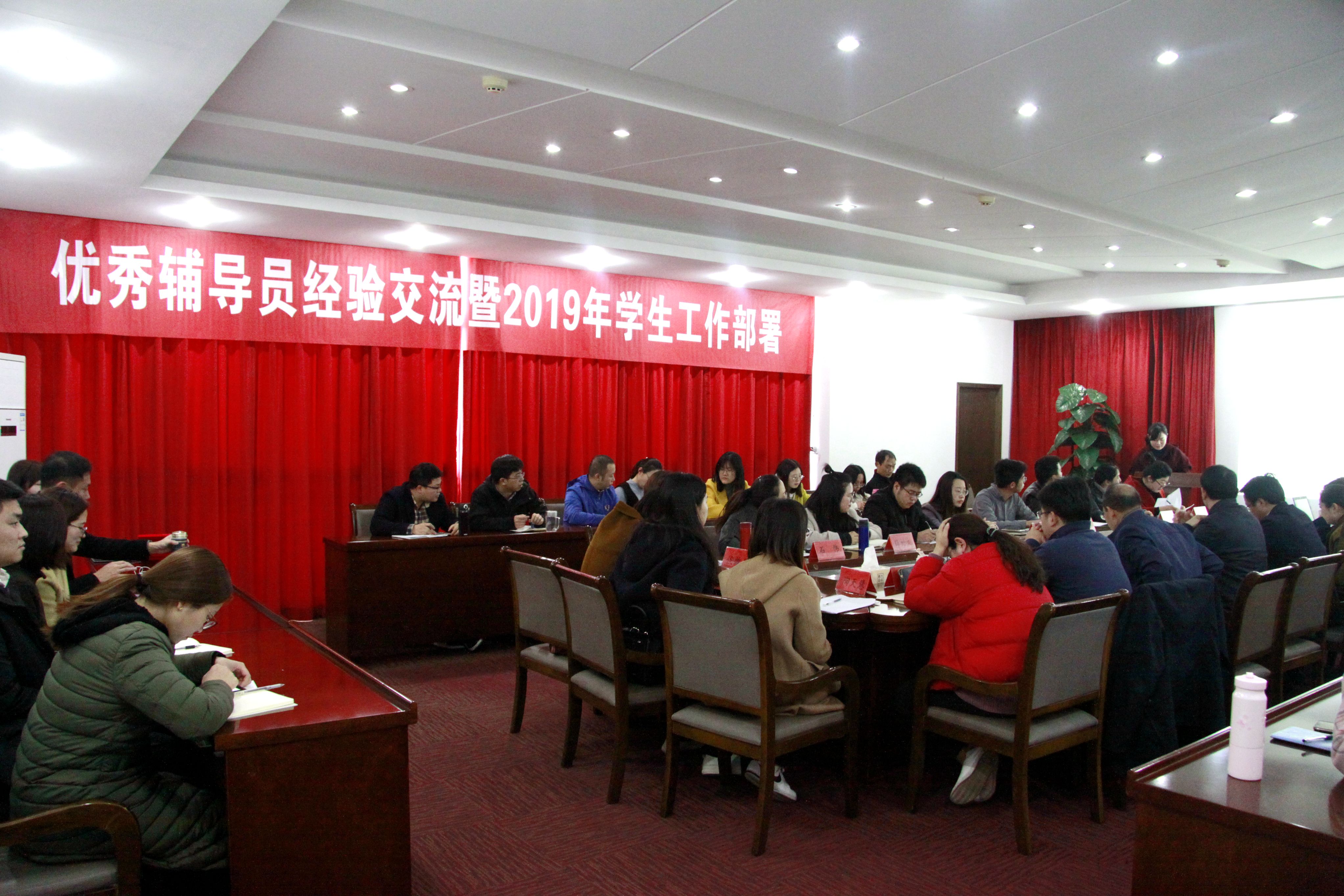 2019年3月22日下午,我院召开优秀辅导员经验交流会并部署新学年学生工作。学院副院长沈明、学生工作处处长李文强、各二级学院党总支书记、辅导员老师及全体学工处人员参加会议。