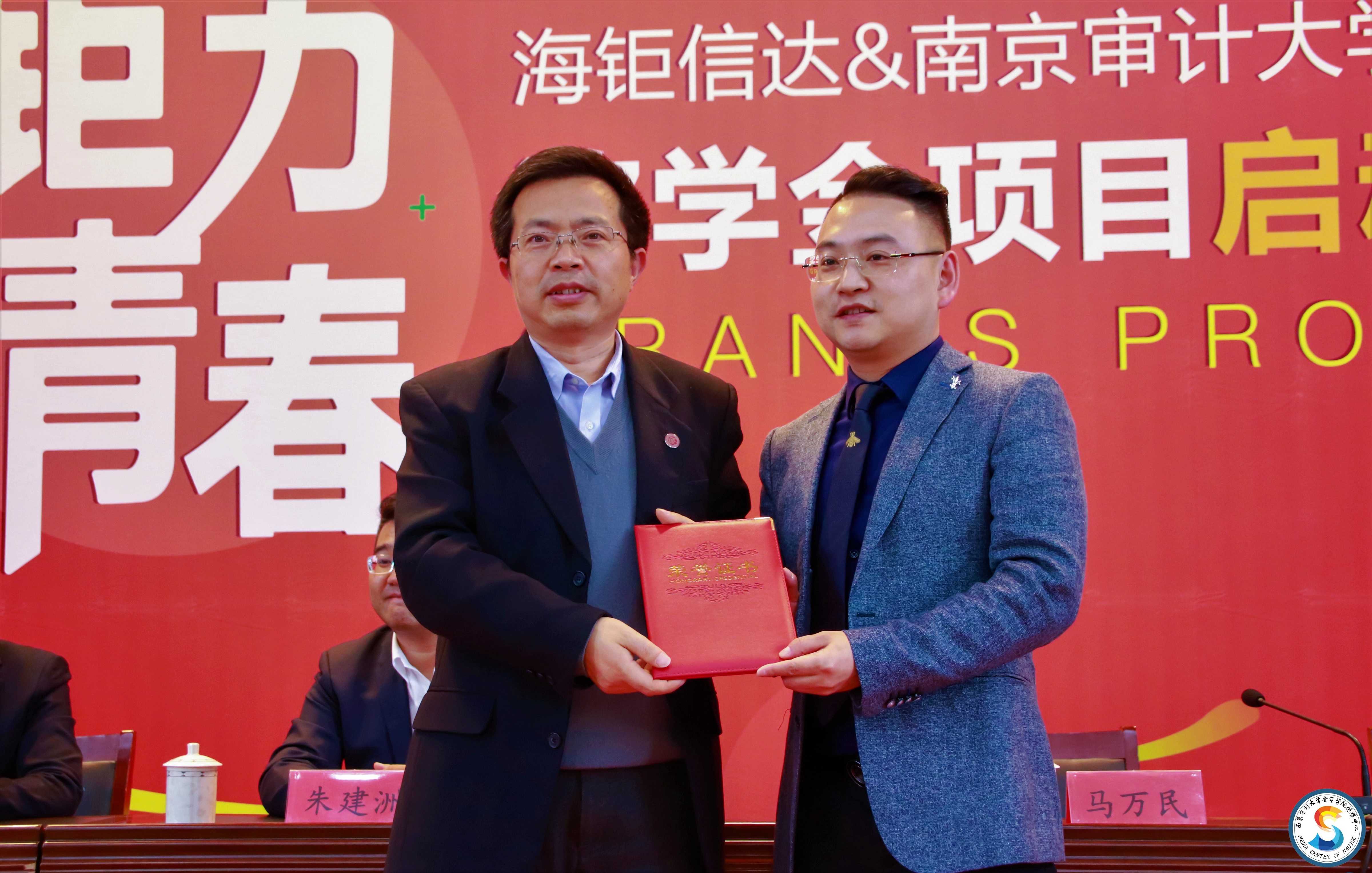 4月10日下午,海钜信达奖学金启动暨实习基地揭牌典礼于南京审计大学金审学院顺利举办。校党委书记马万民教授、深圳海钜信达副总裁兼海钜咨询总裁朱建洲先生、海钜咨询副总裁孟超先生、海钜咨询南京紫荆财富中心总经理,我校优秀校友谢阳平先生及我校300多名师生共同出席了这场捐资助学活动。会上双方领导签订了深圳海钜信达公司在我校设立海钜信达奖学金协议,我校在海钜信达公司建立大学生校外实习实训和就业基地的协议,校党委书记马万民教授和深圳海钜信达副总裁兼海钜咨询总裁朱建洲先生共同为实习基地揭牌。