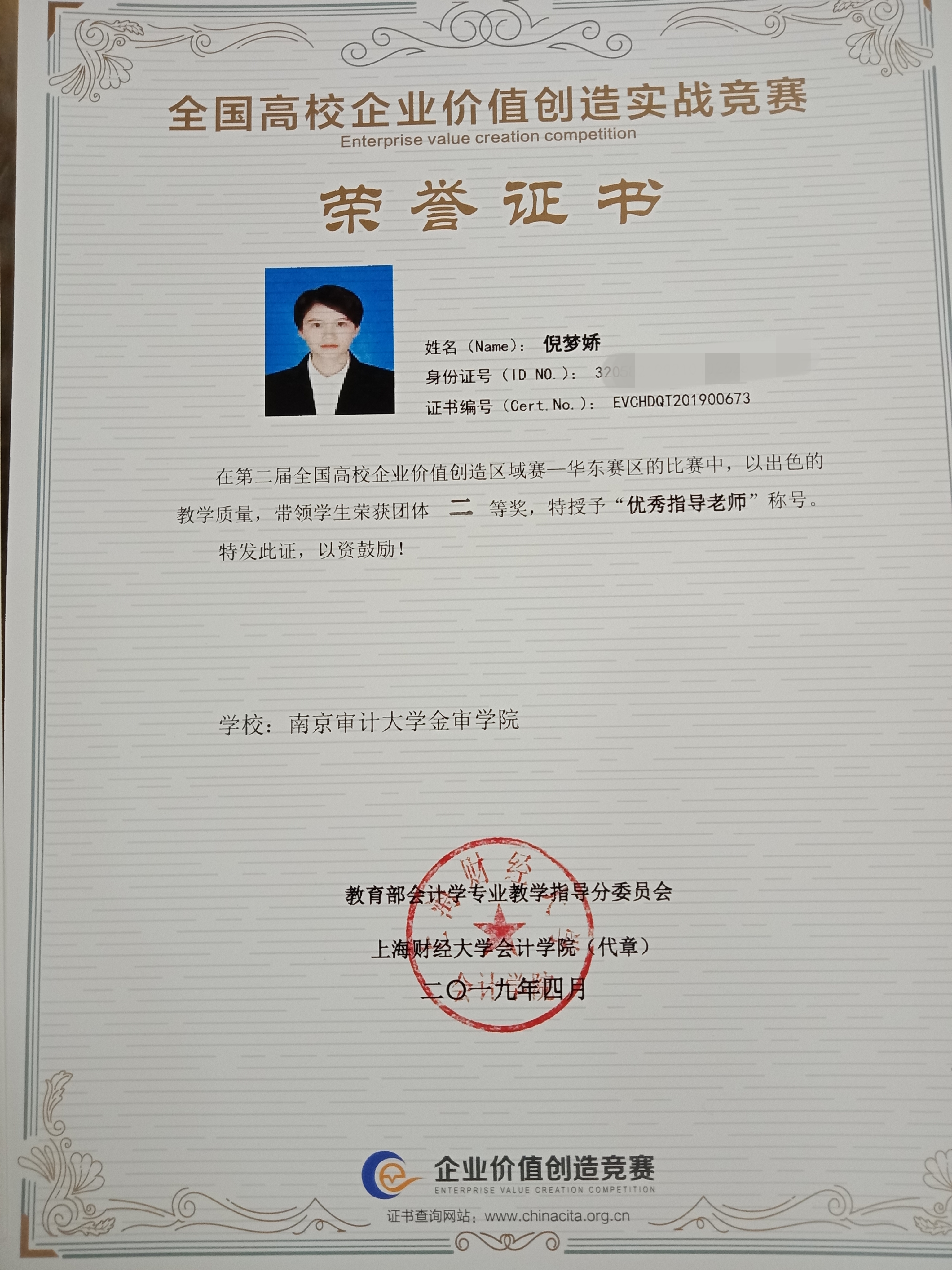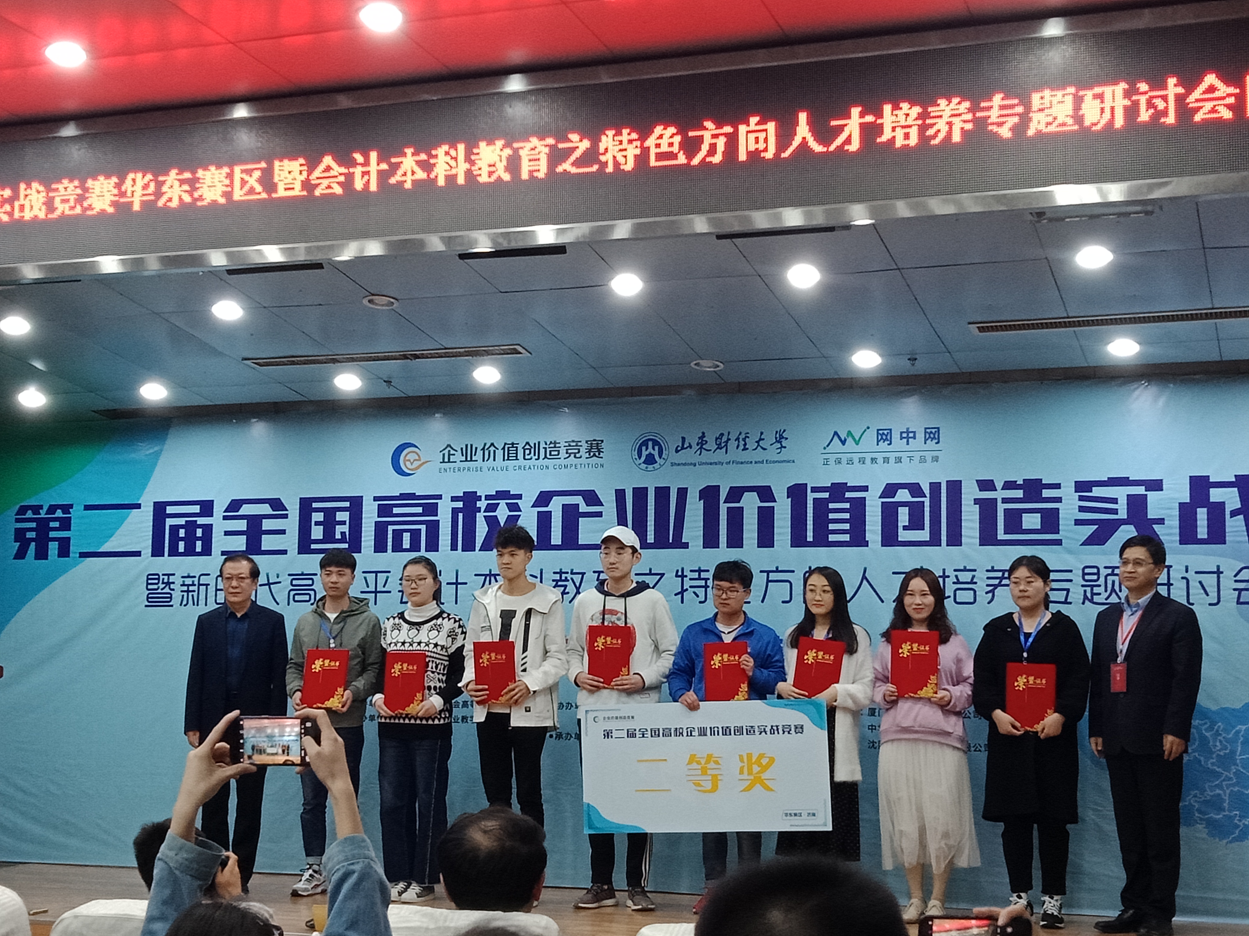 第二届全国高校企业价值创造实战竞赛华东赛区区域赛于山东财经大学顺利举办,我校学子获得华东赛区二等奖的好成绩,仲怀公老师、倪梦娇老师被授予“优秀指导老师”称号。