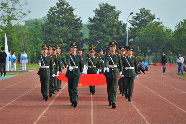 国护从成立至今,每年都承担着军训汇演的护旗任务与升旗仪式。国旗护卫队是军训汇演公认的模范队列,当振奋人心的国歌声响起时,飘扬的五星红旗在全体人员的瞩目下冉冉升起;在激昂的进行曲中,国旗护卫队迈着整齐有力的步伐,接受主席台的检阅。飘扬的红旗下,国护成员用满腔热血捍卫着国旗的尊严。