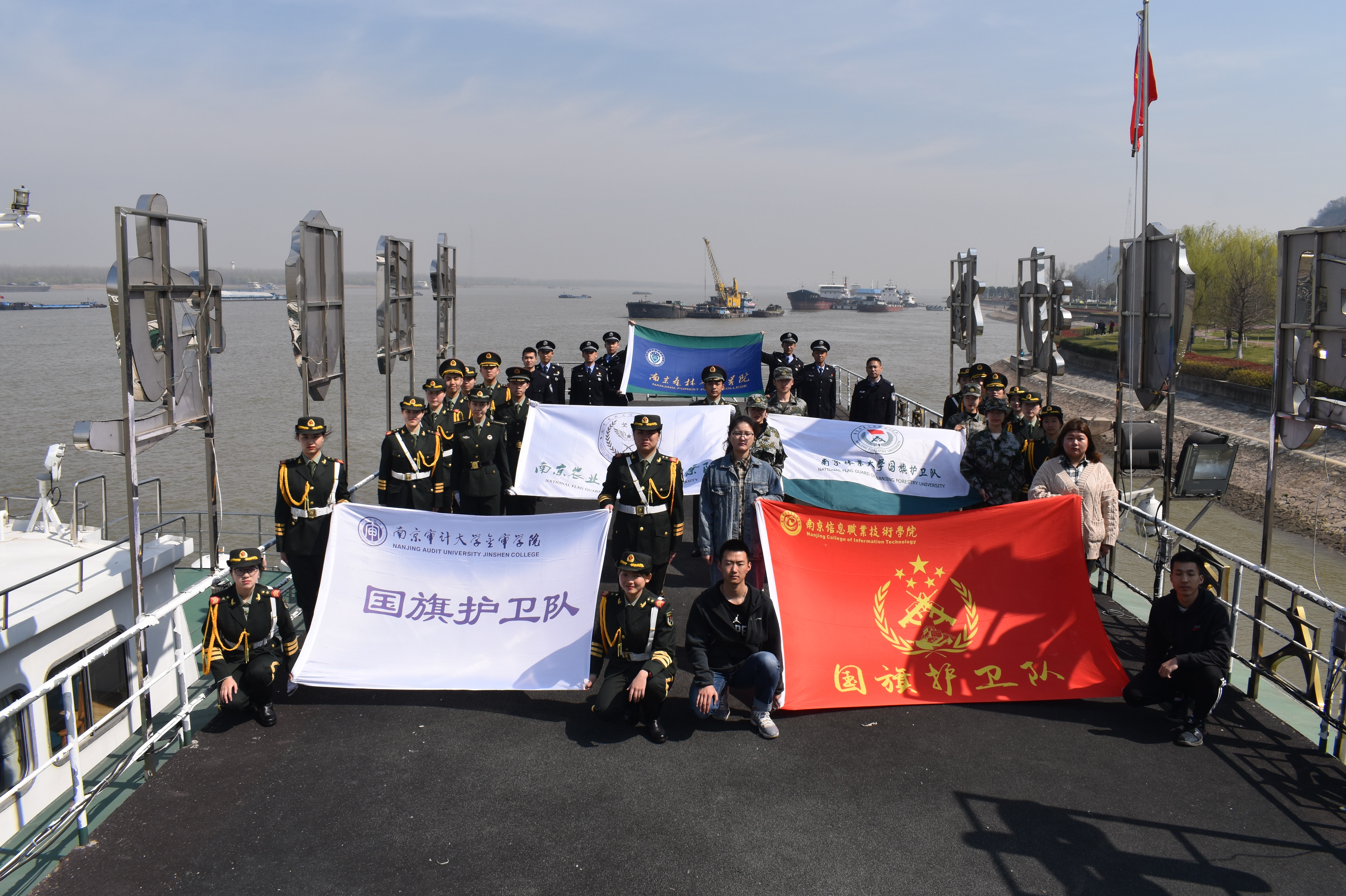 南京审计大学金审学院国旗护卫队以中华人民共和国成立70周年为契机邀请南京审计大学、南京工业大学、江苏海事学院、南京农业大学等七所院校的国旗护卫队举办“中山陵七校联谊活动”,以增进与外校的联系和交流。护卫队员们穿上军装,一同登上中山陵,哀悼孙中山先生,合唱诗朗诵,积极营造健康向上的文化氛围,在展现良好精神风貌的同时,彰显国旗护卫队爱国、护旗的精神。