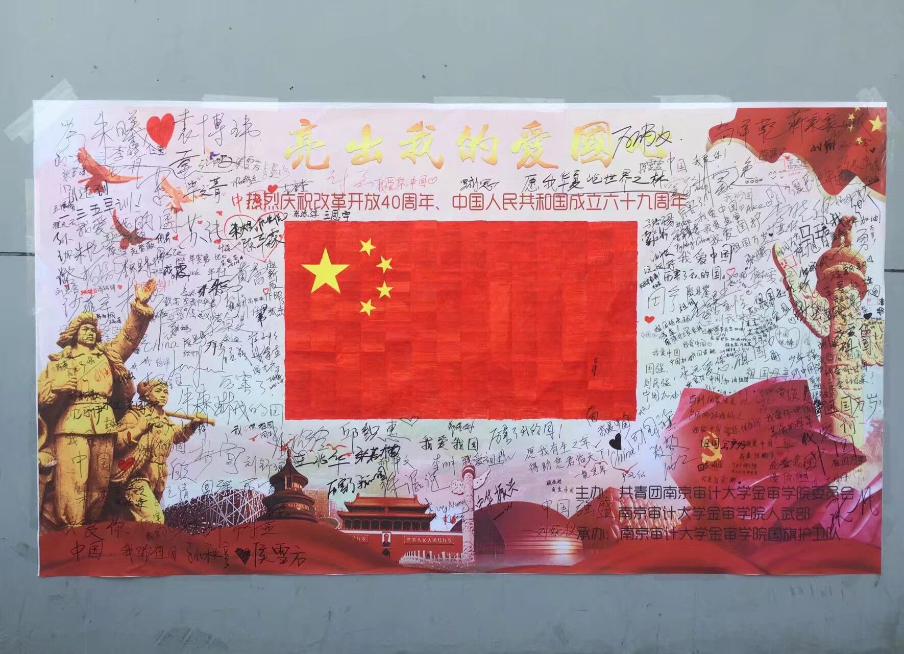 在改革开放41周年与祖国建党98周年之际,国旗护卫队在校内举办了“亮出我的爱国心”的活动,欢迎师生在空白小方块上涂色,短短几十分钟,活动展板上由280个空白小方块组成的国旗图案一点一点变得鲜红,留言区上也写满了对祖国深深的祝福。小小的行为蕴含的巨大的力量,同学们用自己的方式,心怀敬畏又无比自豪地表达着对五星红旗的爱!