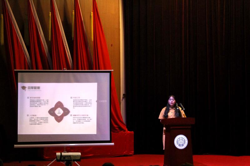 艺术学院18级环境2班辅导员助理,中共党员,况岑钰带来的“知行合一,不忘初心”。首先她从日常管理展开,着重强调了要注意调节同学之间的矛盾,要深入群众,在问题扩大之前就遏制,调节同学们的矛盾。最后她个人总结了一些给19级辅导员助理的建议:做好桥梁、纽带作用,合理规划、做好榜样,知行合一、不忘初心。