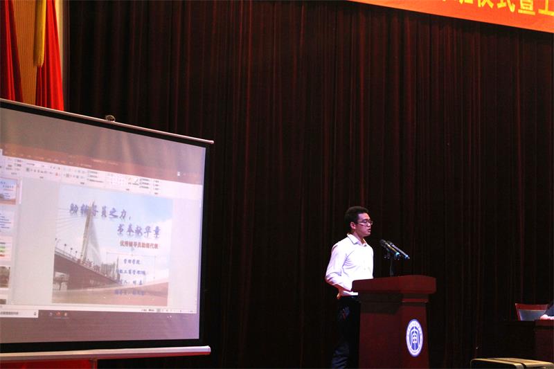 信息学院18级网络1班辅导员助理班志伟就“做学弟学妹们的启明星”为主题进行发言。班志伟同学从自我发展、第二课堂和展望未来三个方面进行阐述,阐述了想要成为一名合格的辅导员助理,就要提高自身成绩,他对未来做出展望,希望学弟学妹们能够越走越好。