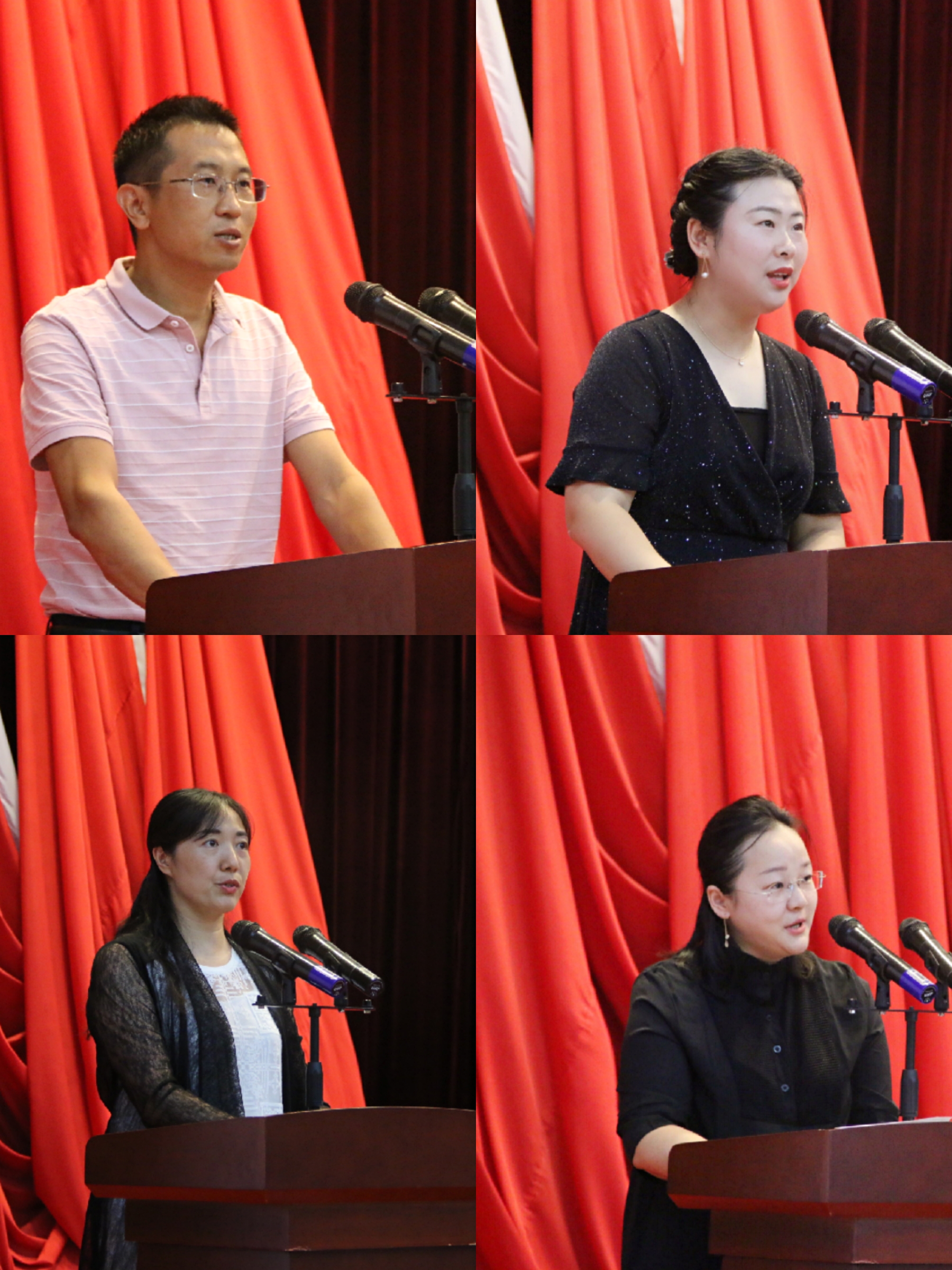 金融与经济学院教授杨新房老师、会计与审计学院学生党支部书记王立峰老师、管理学院党总支书记、副院长季媛媛老师、教务处处长孟琪璐老师作交流发言。