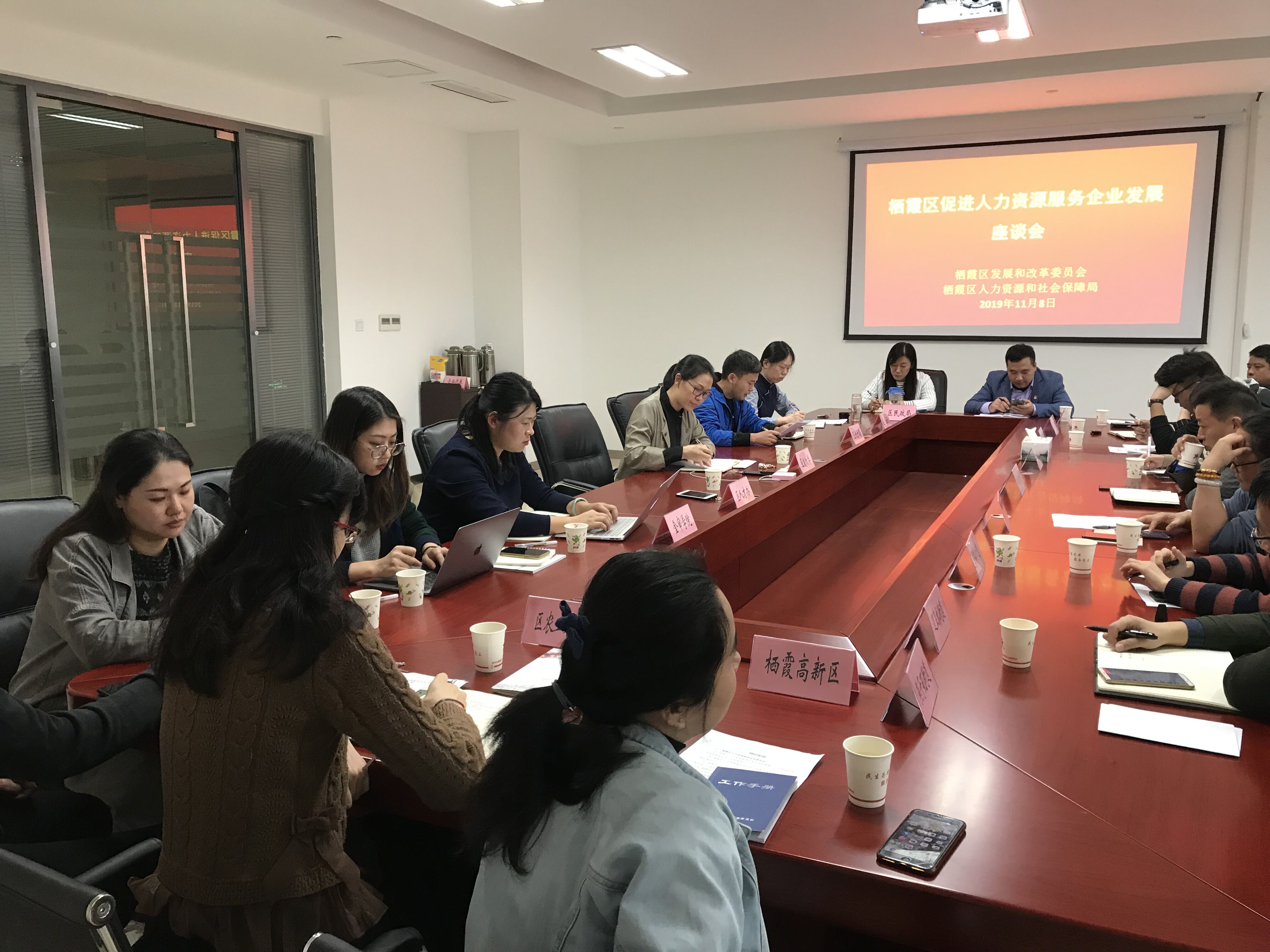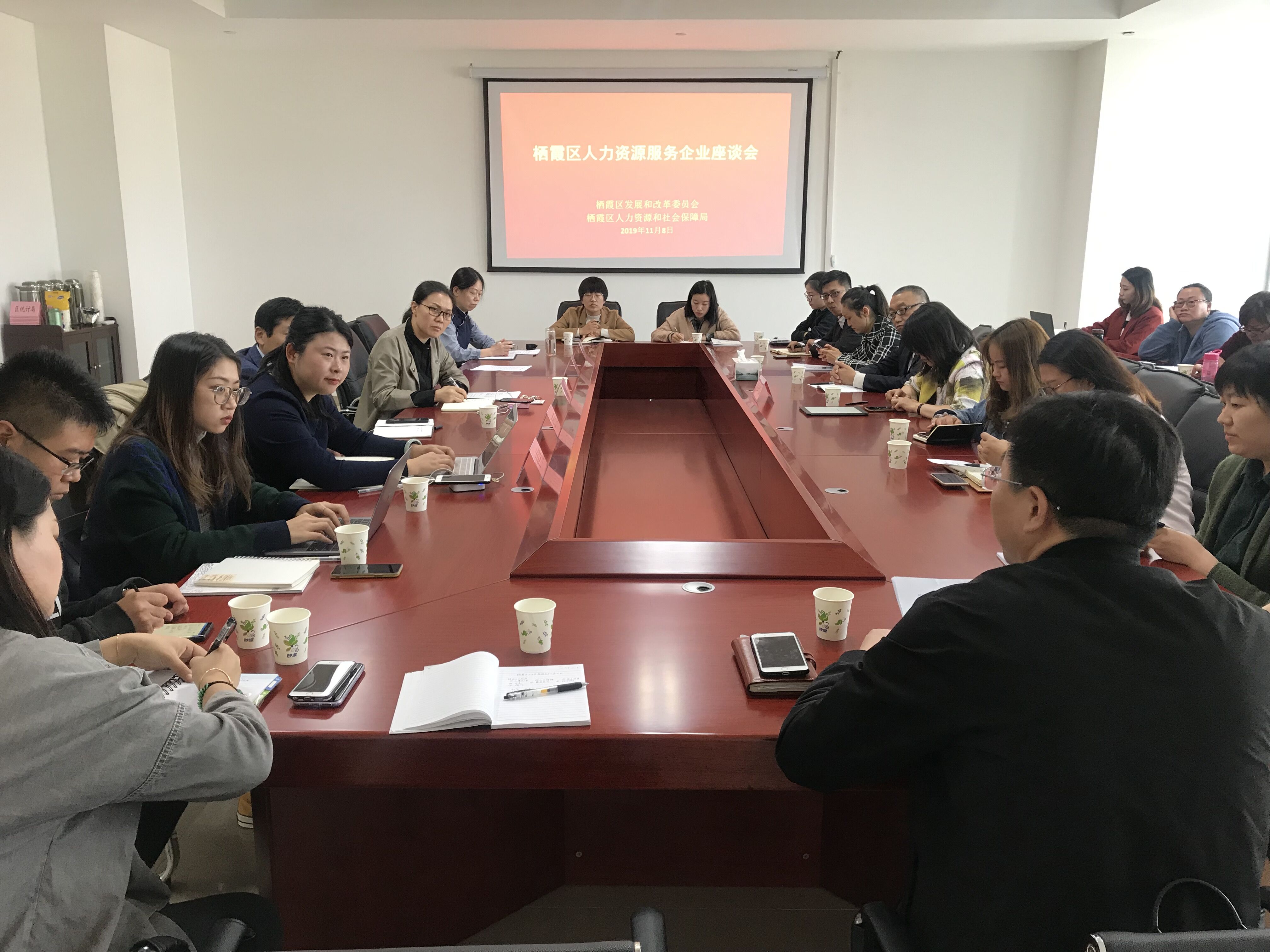 第二场座谈会是针对栖霞区现有的政府机构部门对人力资源服务行业集聚问题的调研,来自栖霞区人才办、人社局、统计局、民政局及栖霞区所属的多个街道负责人就栖霞区目前人力资源服务的书评、收入状况、产业贡献率、在人力资源服务业上面的优势及问题进行了交流和讨论。