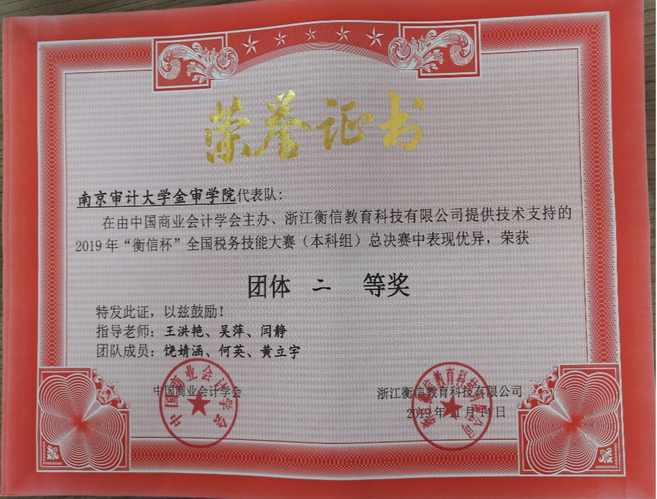 本次比赛,税收教研室在17级税收专业学生中进行了广泛宣传,经过海选、初选,层层选拔,最终确定了饶婧涵、何英、黄立宇等三人参加税务技能大赛模块比赛,叶翠玉、吴姝懿、毕文菁、邓德辉参加税收风险管控模块的比赛,最终饶婧涵、何英、黄立宇三人荣誉税务技能大赛全国二等奖。