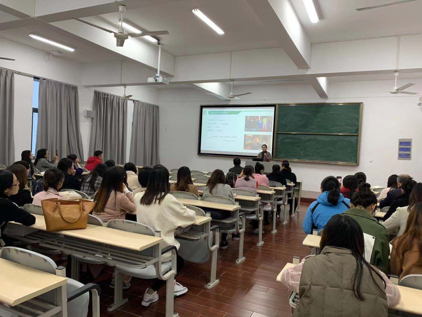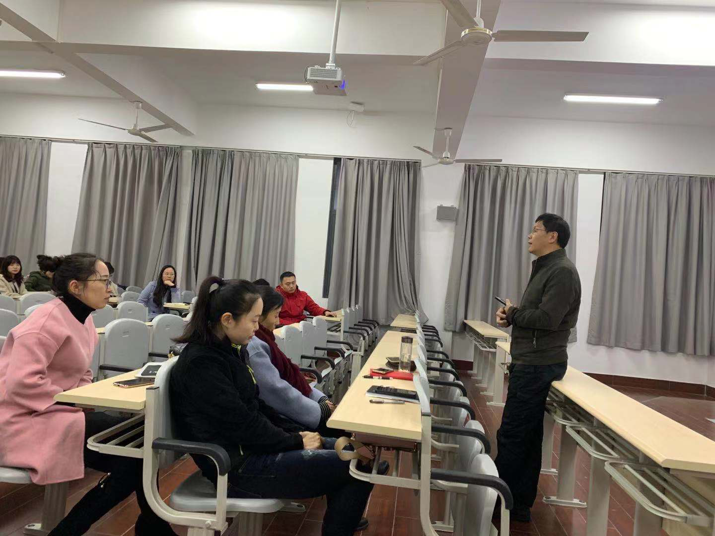为进一步做好学校在线开放课程的建设工作,提高在线课程质量,2019年11月20日下午,学校教务处邀请爱课程制作部蔡主任来校讲解在线开放课程视频制作技巧,学校老师积极参与,认真听取专家的讲解和建议。