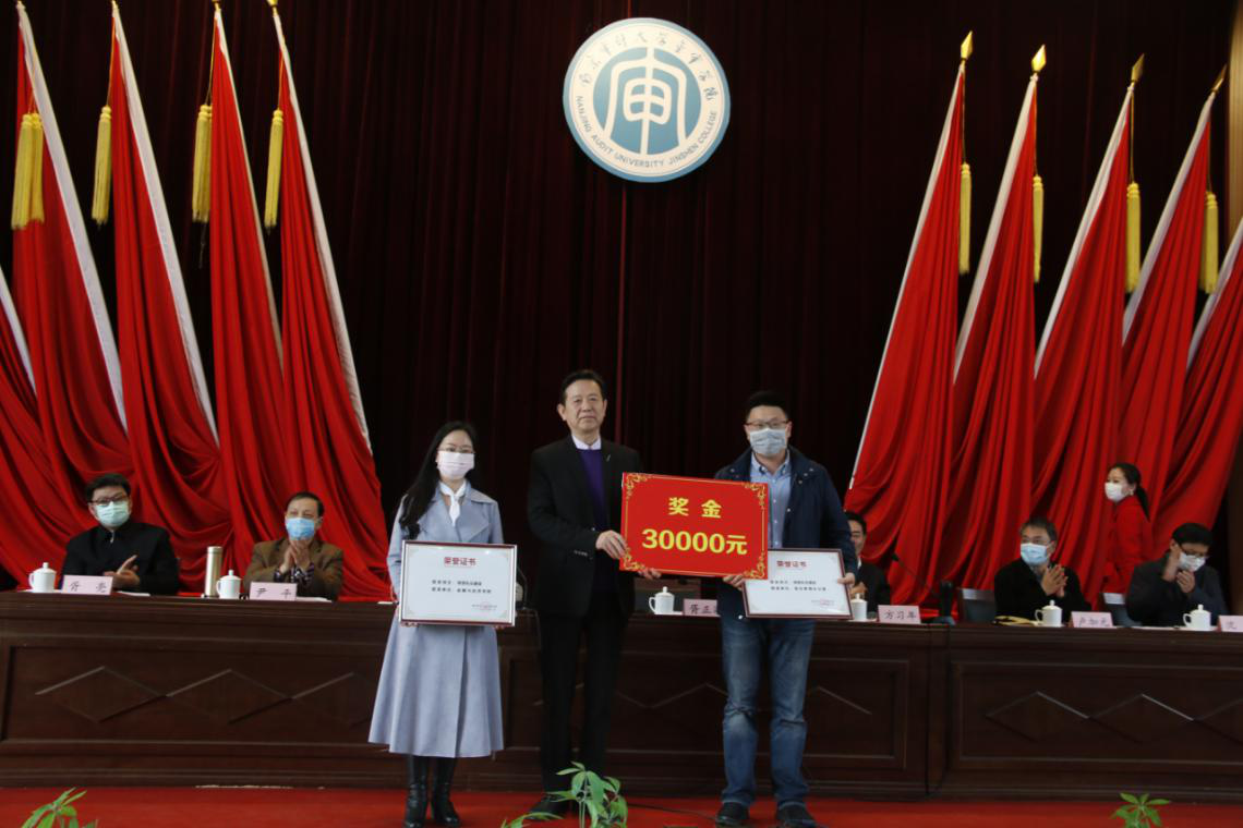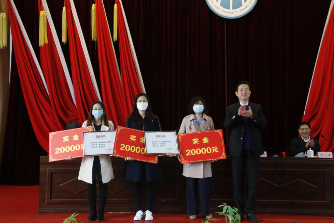 会议表彰了专业建设、师资队伍建设先进单位,董事长为获奖单位颁发荣誉证书和奖金。2019年,我校会计与审计学院、管理学院、教务管理办公室被评为省一流专业建设先进单位,管理学院被评为专业综合评估星级专业建设先进单位,金融与经济学院、综合管理办公室被评为师资引进与培养年度先进单位。