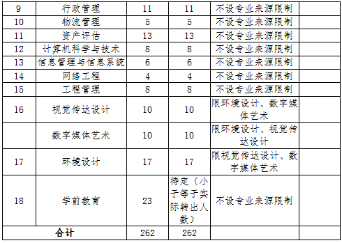 根据教学资源和现有各专业班级容量,对转入专业人数实行宏观控制,统筹安排。学生转出比例原则上不超过本年级本专业人数的15%。2019级本科在校生人数为2260人,本次共接收转专业学生292名。具体计划及名额分配见下表: