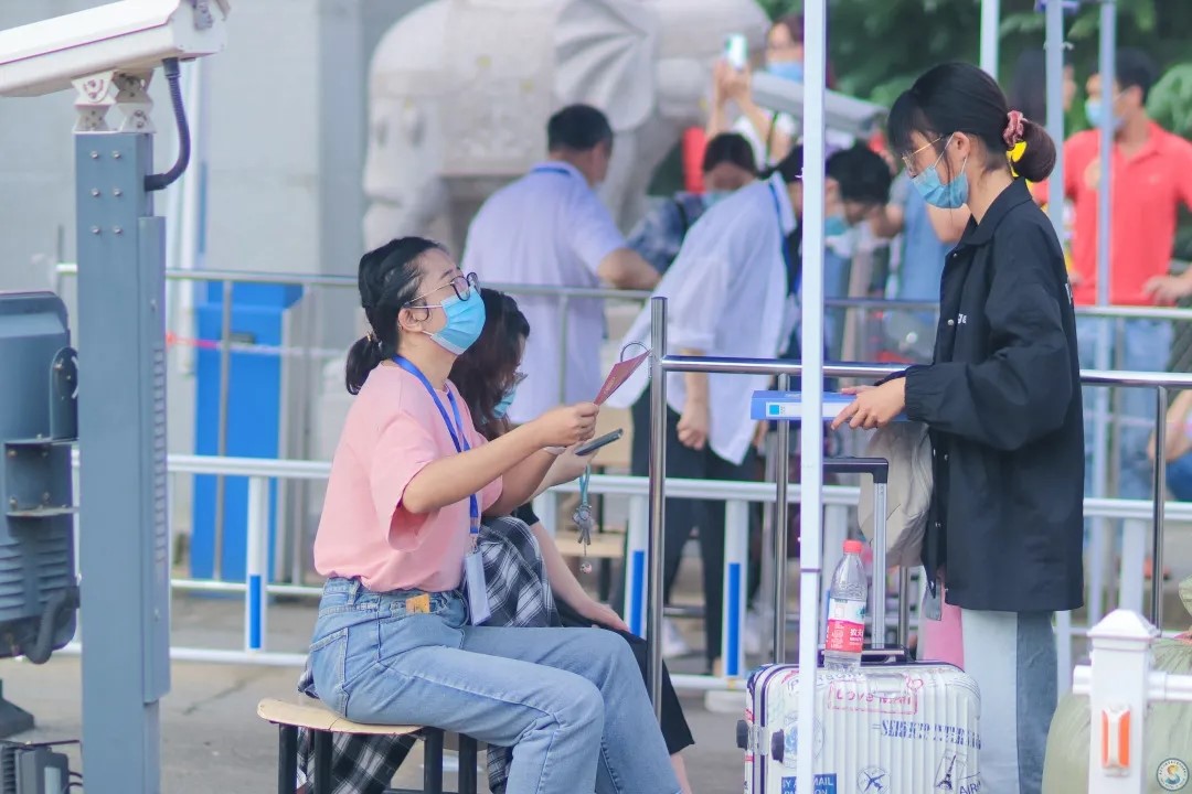 各位负责老师组织学生志愿者,秉持着热情周到、文明礼貌、安全有序、协调高效的原则,积极为新生引导路线,搬运并看管行李。由于疫情原因,学生家长无法陪同新生进入校园,但各位负责老师和学生志愿者的热情与温暖足以弥补这份缺失,让新生感受到金审这个新家庭的温度。