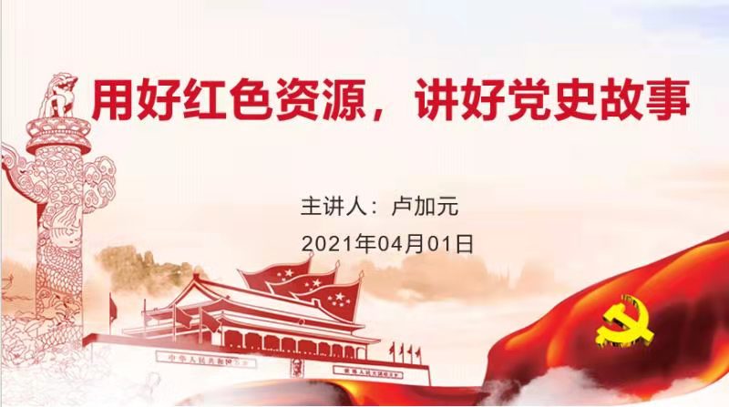 4月1日,金审学院党委书记卢加元面向管理学院全体教师党员上了一堂生动的主题党课《用好红色资源 讲好党史故事》。卢书记首先阐述了红色资源的内涵及意义,他讲到红色资源是党领导人民革命、建设和改革过程留下的历史遗存和精神印记,是弥足珍贵的精神财富,承载着党波澜壮阔的革命史、艰苦创业的奋斗史、砥砺奋进的改革史,彰显着党的性质和宗旨,见证着共产党人的初心和使命,凝聚着党的优良传统和作风,蕴含着丰富的革命精神和厚重的文化底蕴。