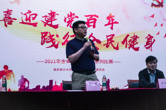 胥亮发表了热情洋溢的讲话,他指出体育是大学教育重要的组成部分,是创建校园文化氛围重要的载体,而体育比赛为同学们提供了展示自己的舞台,激烈的比赛是大学生青春与活力的体现。胥亮同志鼓励同学们走出宿舍、走向操场、走向阳光,经常参加体育运动不仅可以锻炼强健的体魄,坚强的意志,还能交到很多的朋友,丰富自己的大学生活,希望同学们不仅要自己运动,还要带动身边的同学一起锻炼,为学习和工作奠定坚实的身体基础。