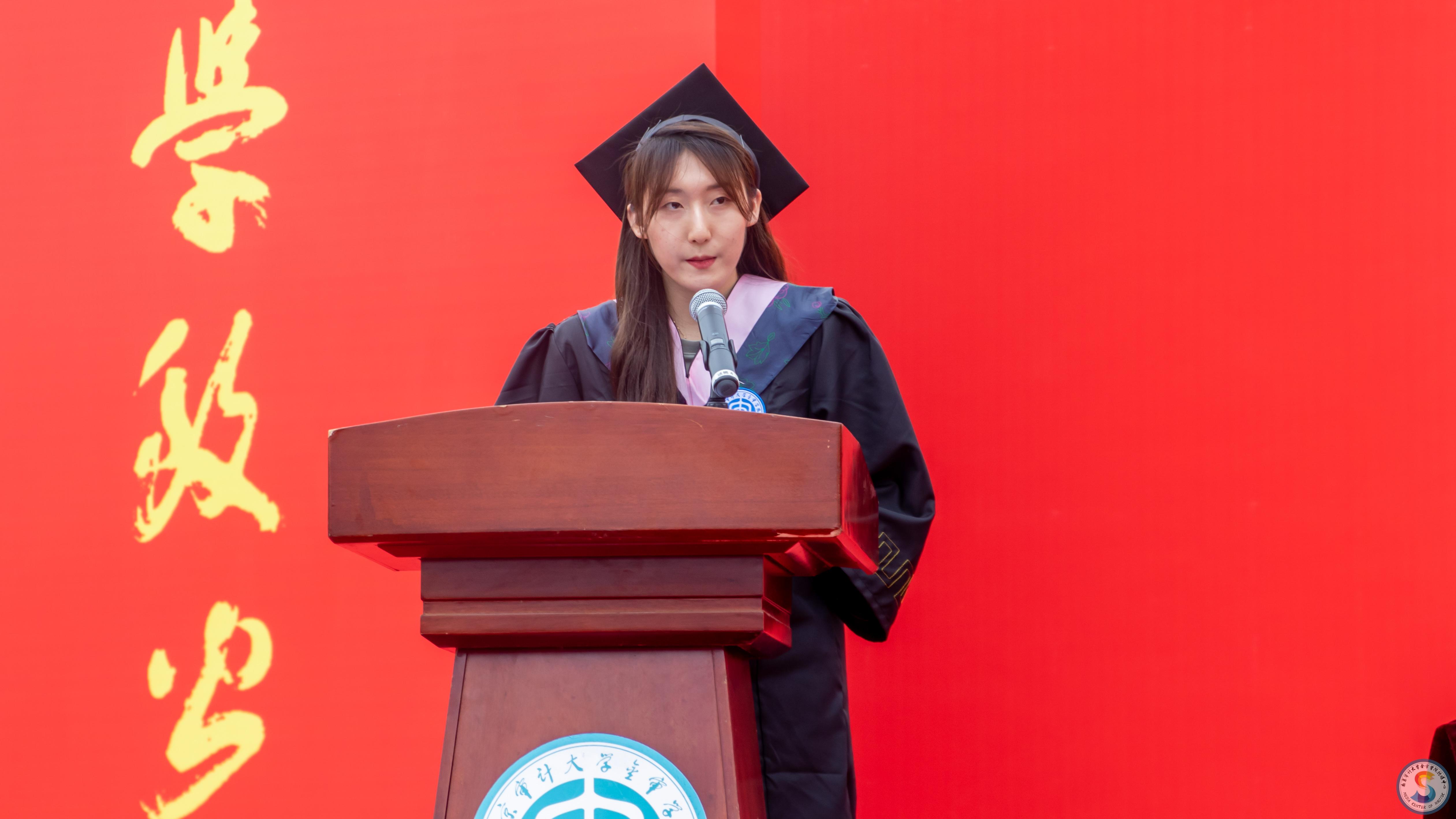 2021届毕业生代表管理学院卢紫荃同学发言。她与我们分享了大学四年的阶段性目标,学习过程中的宝贵经验和她对未来的积极思考。