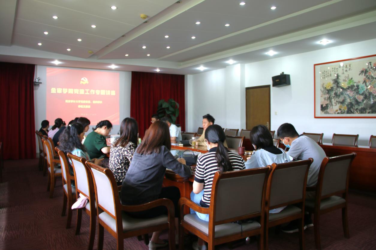 为充分发挥党建引领作用,有效把握新时代党建工作方式方法,进一步加强基层党支部建设,5月26日,金审学院党委邀请南京审计大学党委常委、组织部长李乾文教授作专题辅导讲座。金审学院党委书记卢加元主持,金审学院党委副书记、院长方习年出席讲座。金审学院各党总支、直属党支部、党支部书记聆听讲座。