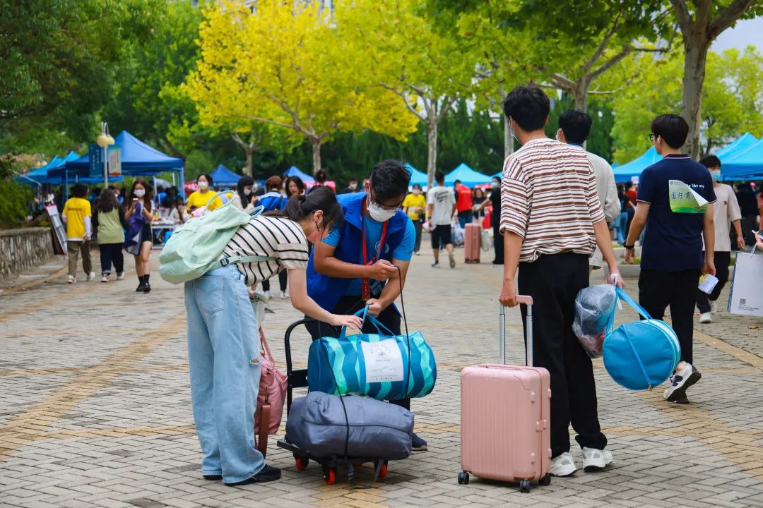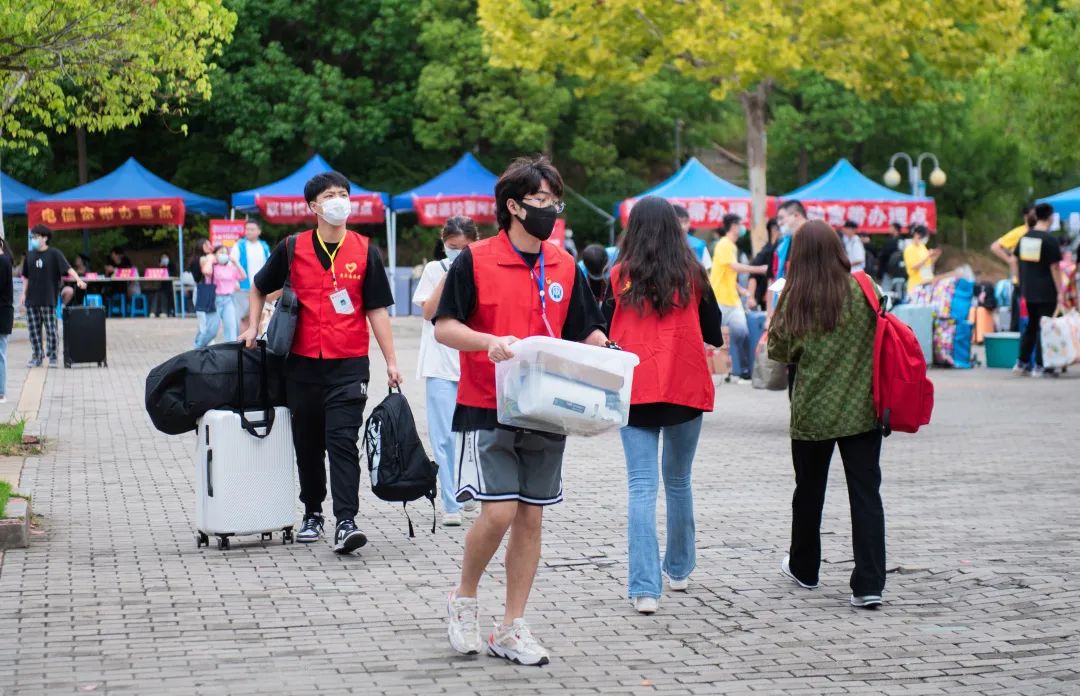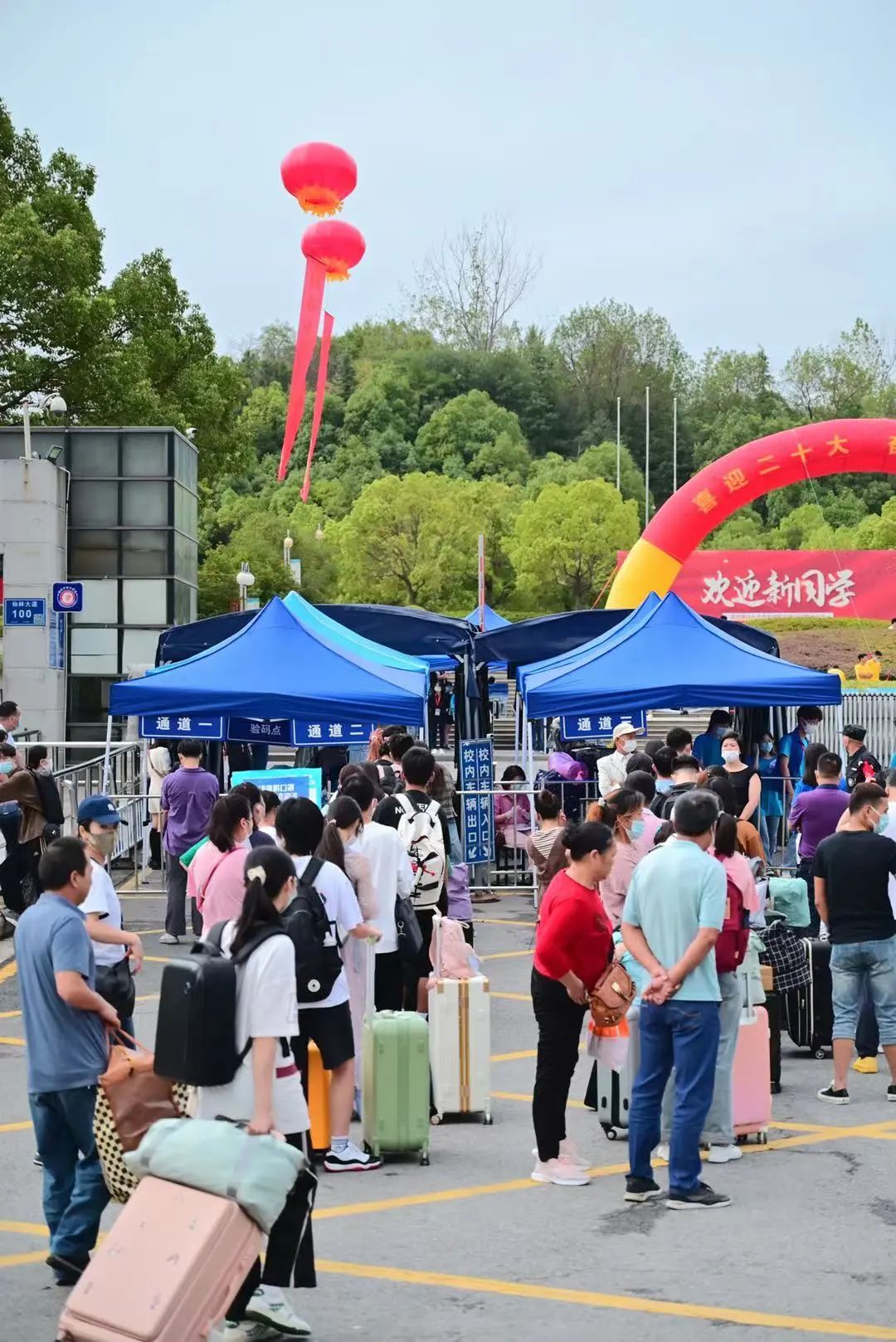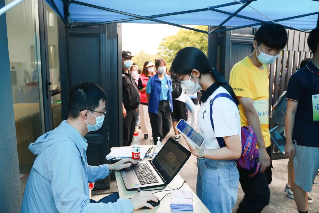 为做好疫情防控,新生需要在入校时手持身份证和录取通知书,出示防疫健康信息码和绿色行程卡,经过体感测温和登记手续后方可入校。虽然家长无法进入校园,但各学院学生志愿者和老师都早早等候在校门口,热情地为新生提供帮助,指引他们顺利入学。