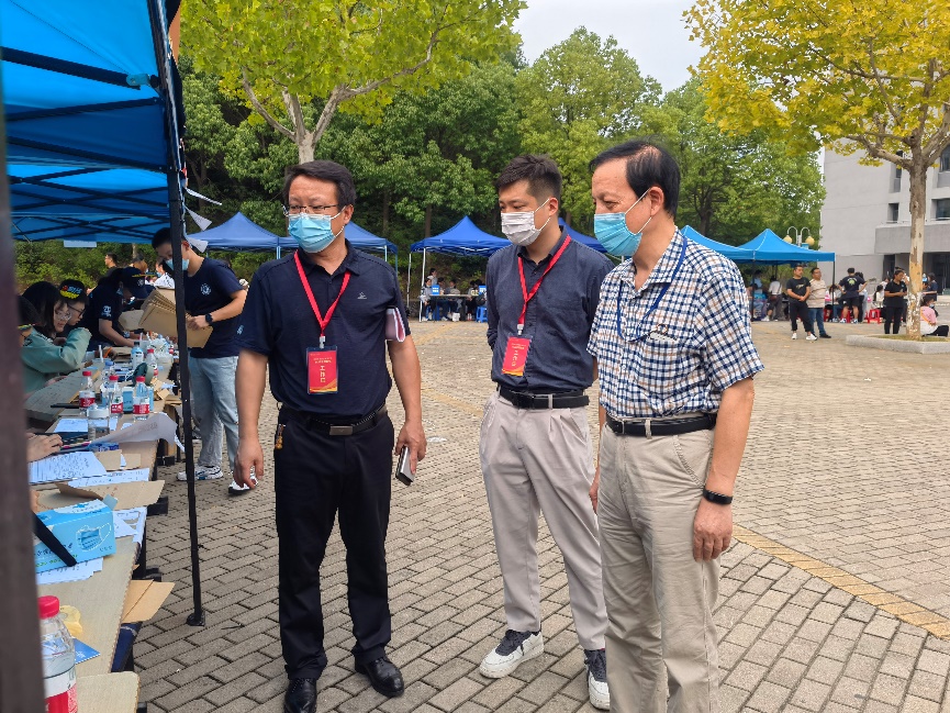 在迎新现场,南京审计大学金审学院副院长、会计与审计学院(国际商学院)院长尹平教授亲切慰问现场工作人员与志愿者,详细了解新生报到情况,叮嘱大家关爱学生、服务学生,做好新生报到工作。会计与审计学院(国际商学院)党总支书记庄怀军、党总支副书记张驰与2022级新生亲切交流,勉励新生们尽快适应学院生活,认真学习,勤练技能,掌握本领,报效祖国。各系部负责人、辅导员老师以及辅导员助理在新生报到点欢迎萌新们的到来,热情为他们办理报到手续。迎新工作如火如荼地进行着,志愿者们忙碌的身影随处可见。