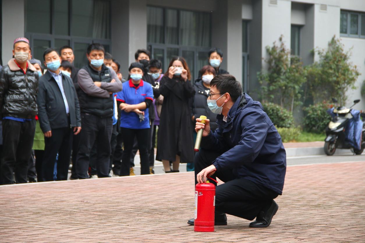 演练开始前,金审学院安全保卫处负责人张荣向大家介绍了本次演练的基本情况。由专人对火灾现场的应急处置方案、灭火器的种类、适用范围、日常检查内容以及注意事项等进行介绍,并向参与人员详细讲解、演示干粉灭火器的使用方法。