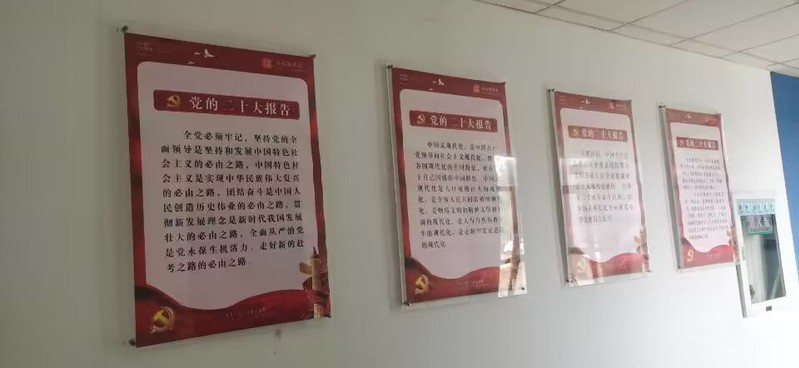 为积极营造学习活动的良好环境,信息学院在办公区一楼走廊处设立了关于党的二十大报告宣传橱窗,形成了随处可学、随时可学的浓厚氛围。