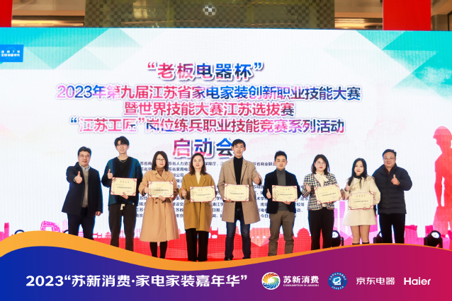 为推进“十四五”高技能人才发展规划落地,进一步加强全省技能人才的队伍建设,培育知识型、技能型、创新型劳动人员,2023年3月3日,“老板电器杯”第九届江苏省家电家装职业技能大赛暨世界技能大赛江苏选拔赛启动仪式在南京举行。本届大赛由江苏省商务厅、江苏省人力资源和社会保障厅、江苏省总工会、江苏省商业联合会指导,江苏省总工会、江苏省家用电器协会联合举办,杭州老板电器股份有限公司冠名。一方面通过举办大赛,促进产教融合,让教师学生与企业员工同台竞技,提高他们的专业知识与技能;一方面为我省家电家装行业提高一线员工技能,选拔人才,弘扬工匠精神给与支持。启动仪式上,省人社厅和省总工会为第八届大赛获得一、二等奖的选手颁发“江苏省技术能手”证书和“江苏省五一创新能手”颁发证书。