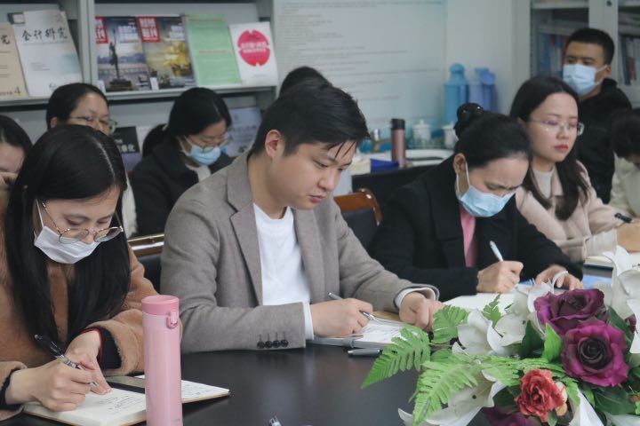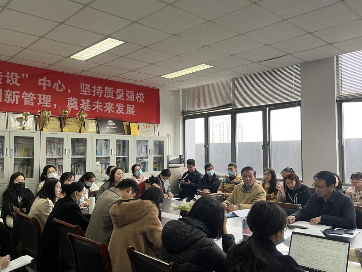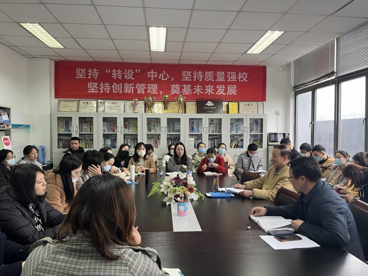 首先,尹教授认真传达了胥正洋董事长在大会上的讲话内容。胥董事长指出,10年来,在省教育厅直接领导下,在南京审计大学正确指导下,在学校领导班子和全校教职工的共同努力下,学校的建设和发展取得了优异成绩,同时,胥董事长从未来目标、关注高质量发展及加强中外合作办学等三方面建设提出了要求。随后,尹教授向教职工继续传达了方习年院长在大会上的工作报告,分别从“决胜转设达标建设,助推学院高质量转型发展”、疫情防控精准扎实、加强党的建设、师资队伍建设、学生培养及校园建设等方面进行了传达学习,指出我院应以“转设”为主题,开始稳评工作,决胜转设之年,对照教育部本科教育标准,评估硬件水平。