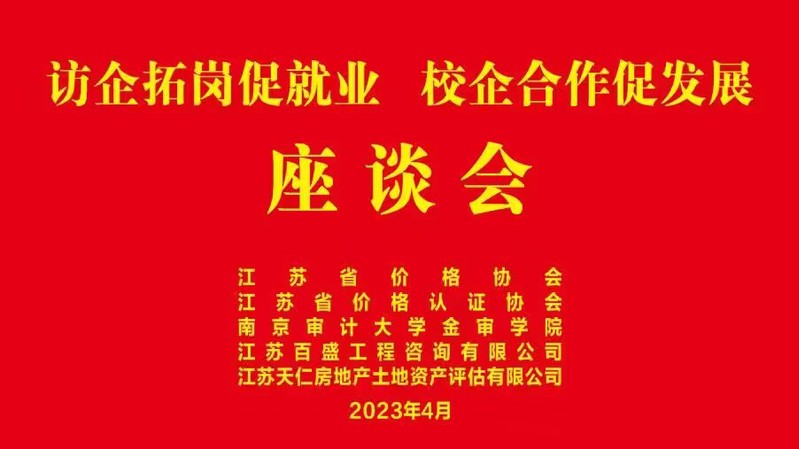 为深入贯彻落实党中央、国务院关于高校毕业生就业创业工作的决策部署,进一步加强校企合作,拓宽毕业生就业渠道,全力促进毕业生高质量发展,2023年4月17日下午,金审学院院长方习年率学院有关职能部门和二级学院领导赴江苏省价格协会开展“访企拓岗促就业、校企合作促发展”活动。江苏省价格协会会长周卫国、江苏省价格认证协会会长倪冰、江苏省价格协会、价格认证协会专业技术评审委员会主任刘璐、江苏省价格认证协会秘书长陈宁生等协会领导,以及江苏百盛工程咨询有限公司董事长方青青、江苏天仁房地产土地资产评估有限公司董事长俞飞等会员企业负责人出席了座谈会。
