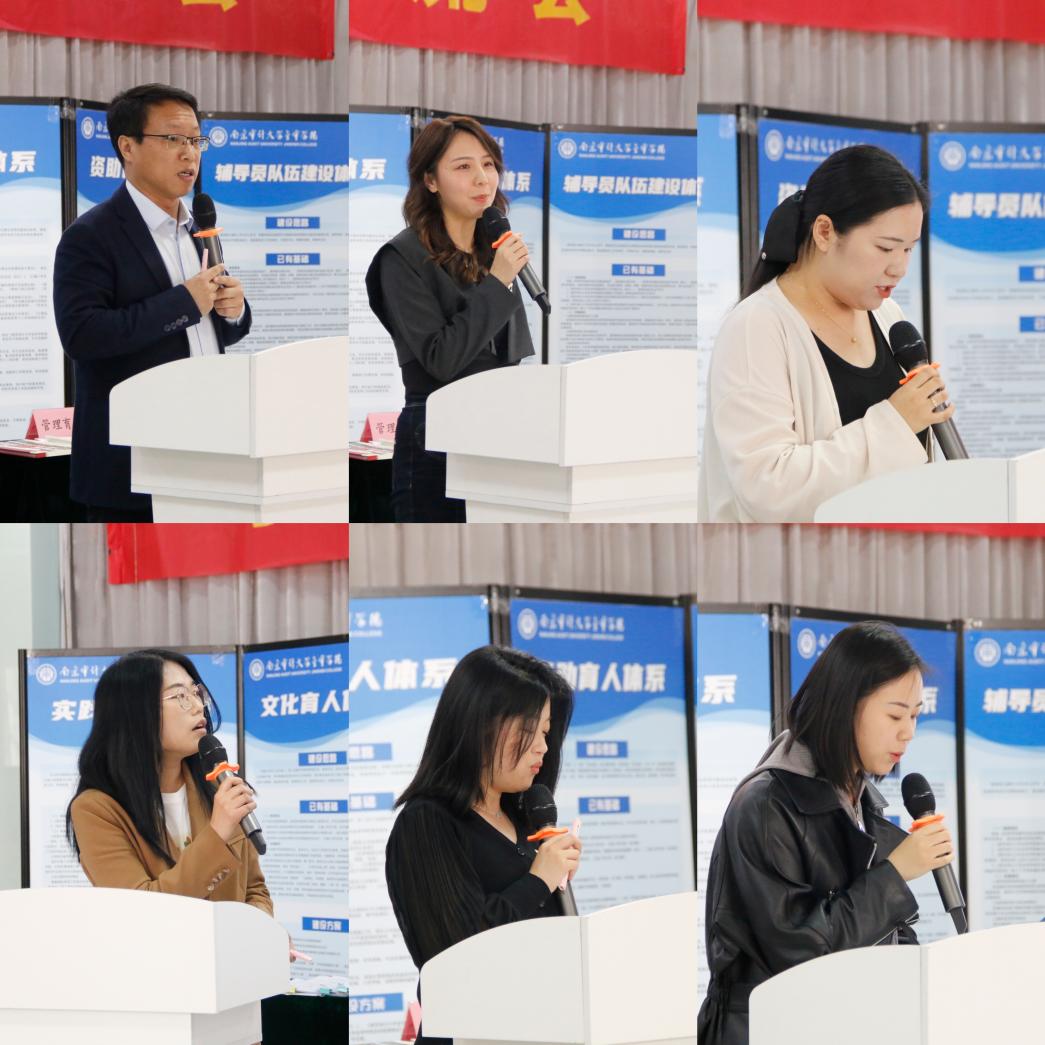 会上,各二级学院党总支书记、辅导员代表结合本院学生工作特色,多角度分享了各自学院学生工作亮点及经验。会计与审计学院书记庄怀军分享了“基于高质量就业的探索与研究”;金融与经济学院辅导员颜璐分享了“如何精细化开展学生工作,探索高效的教育管理新模式”;管理学院辅导员薛舒文分享了“以党建工作和创业工作为抓手,不断提升学生工作质量”;信息科学与工程学院辅导员赵天舒分享了“加强教学融合,全面提升学生工作质量”;教师教育学院辅导员彭珊分享了“以党团活动助提升,以就业指导助成长”;艺术设计学院辅导员王雨竹分享了“牢记立德树人使命,探索构建‘三位一体’育人新模式”。