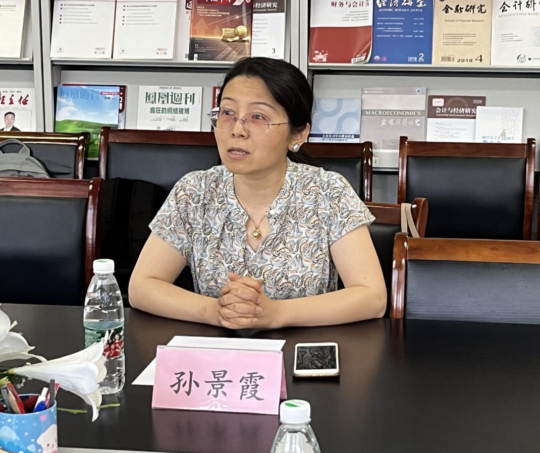 大华会计师事务所江苏分所合伙人孙景霞代表企业进行发言,对企业的发展历程和现状进行简短的介绍,指出事务所员工应具备的能力和专业素养。同时,表示希望能够通过校企合作引进更多优秀人才,为团队发展注入活力,并针对后期的合作提出展望。