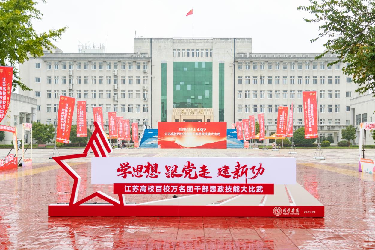 9月28日,由共青团江苏省委、中共江苏省委教育工委、新华日报社、江苏省学生联合会共同主办的"学思想、跟党走、建新功"江苏高校百校万名团干部思政技能大比武在宿迁学院圆满结束。