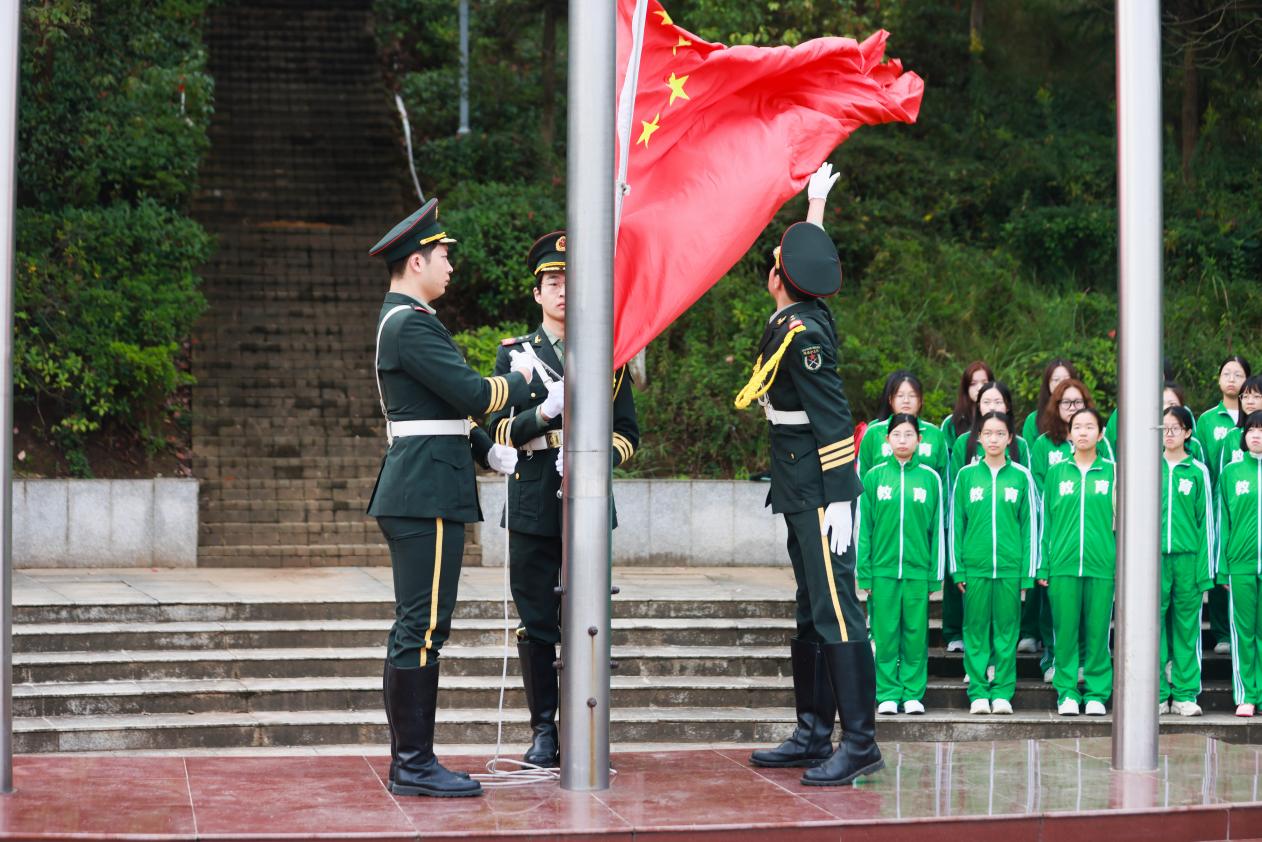 伴随着雄壮激昂的《义勇军进行曲》,五星红旗迎风招展,在清晨一缕缕阳光中冉冉升起。师生们怀着激动和崇敬的心情,高唱国歌,行注目礼,表达对祖国无限的爱!