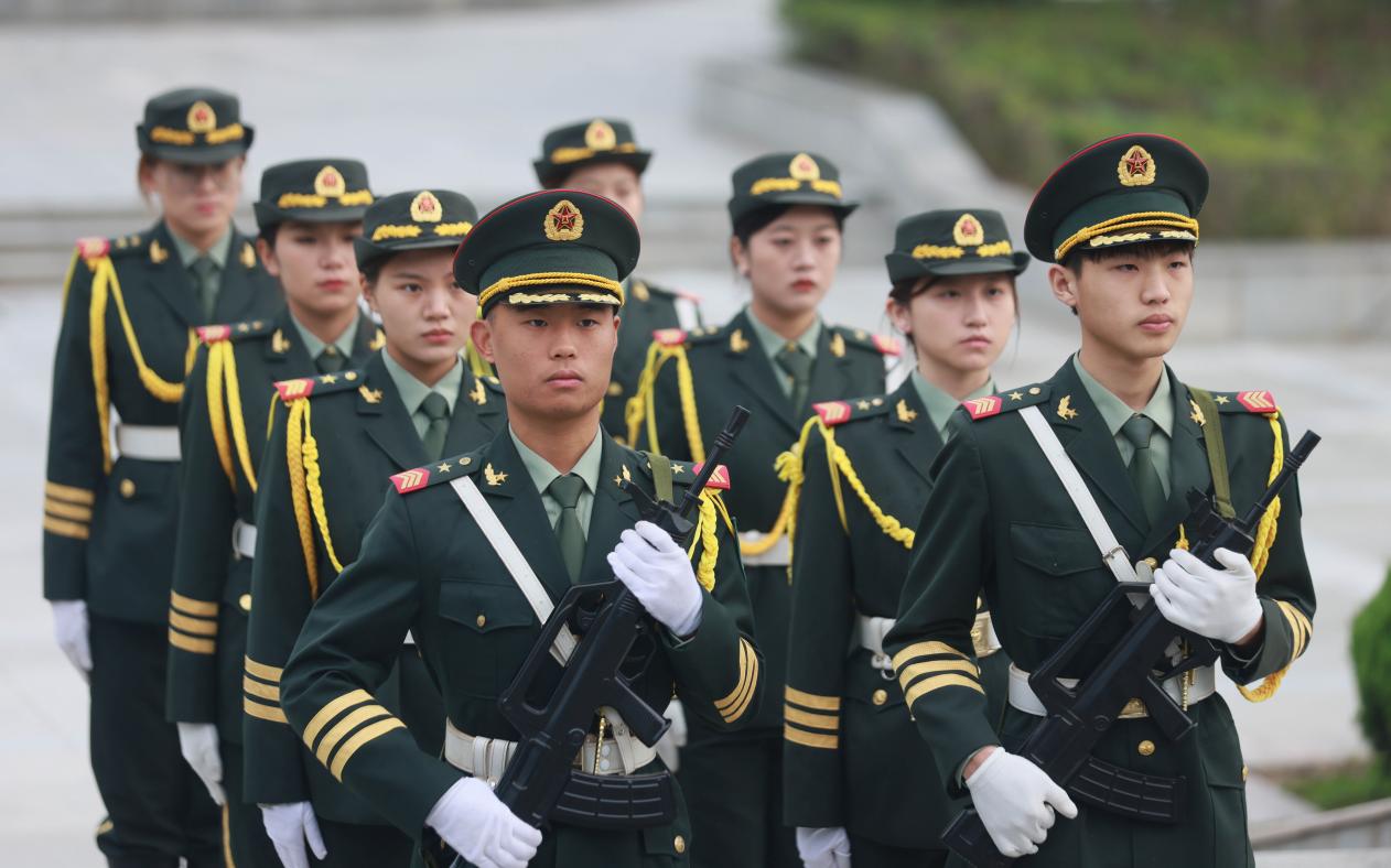 在金秋的晨风中,南京审计大学金审学院国旗护卫队成员迈着整齐的步伐豪迈地走来。他们神情肃穆、英姿飒爽,护送鲜红的五星红旗缓缓进入升旗台。