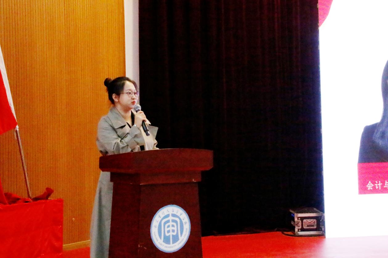 南京审计大学金审学院党委书记蔡雪辉做总结讲话,他对7位候选人的精彩汇报给予充分肯定。他指出,公开答辩会为学生们提供了朋辈教育平台,充分发挥了优秀学子的榜样示范作用。他鼓励全体学生以优秀为榜样,踔厉奋发、勇毅前行,立鸿鹄志、做奋斗者、成栋梁材、养浩然气,为实现中华民族伟大复兴的中国梦贡献青春力量。