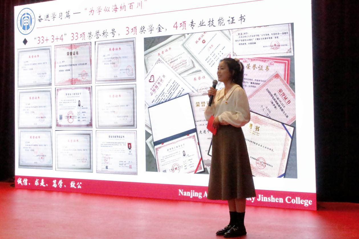 时代新人,引领担当。她曾担任校学生会文体部部长,组织并领导了大小文体活动30余项,获得校优秀学生干部的荣誉称号。她连续两年担任金融院辅导员助理,带领一届又一届的新生适应新的环境,做他们大学生的领路人,被评选为优秀辅导员助理。作为班级团支书,她多次带领班级获得优良班风班,先进团支部等团队荣誉。响应中共二十大的感召,她志愿成为南京档案馆讲解员,以讲解员的身份向更多人传播南京的红色精神。在不同的角色中引领担当,服务青年学子,被学校授予校时代新人和大学生年度人物等荣誉称号。