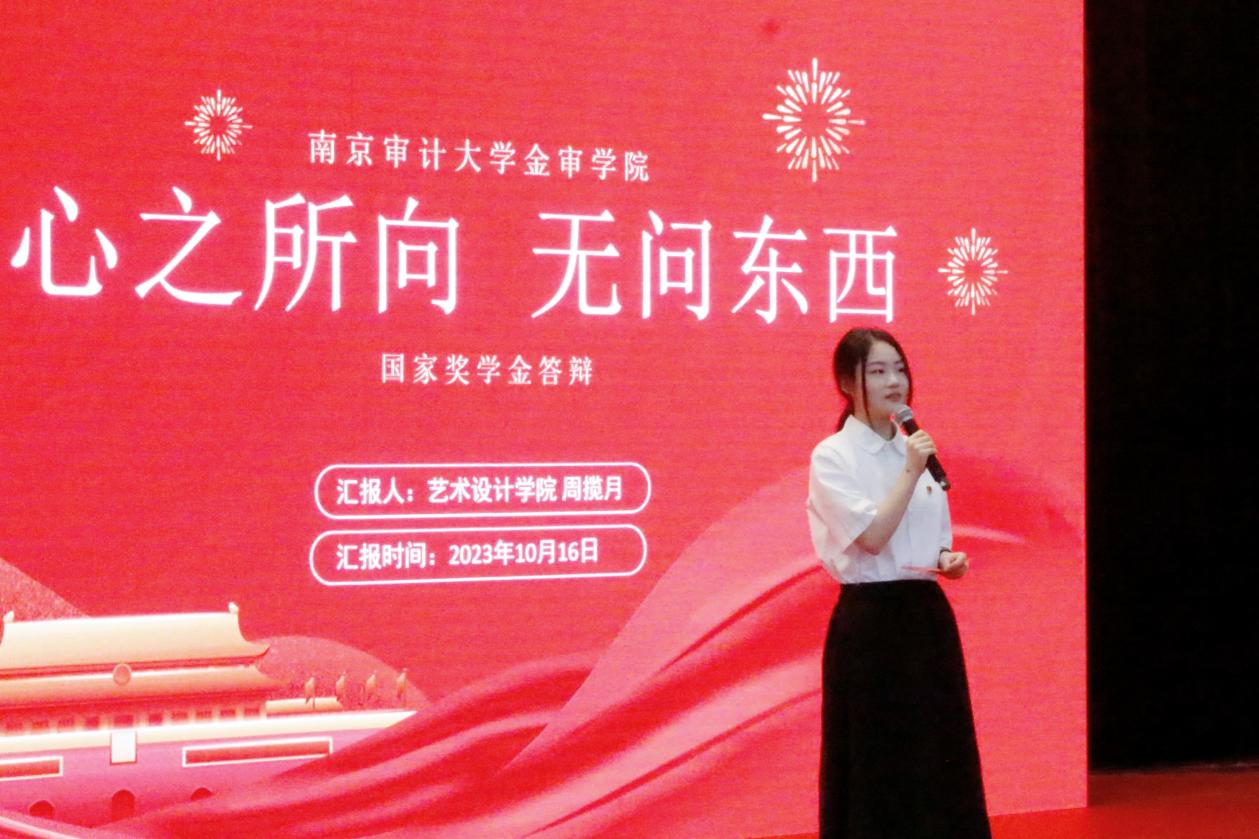 为进一步规范国家奖学金评审工作,发挥优秀学子示范引领作用,促进学生全面发展,南京审计大学金审学院于10月16日下午在图书馆报告厅举行2023年国家奖学金公开答辩会。经过学生本人申请、学院推荐、学工办审核等多个环节后,共有来自各学院的7位候选人进入公开答辩环节,他们分别从思想道德、学术科研、社会实践等多个方面对自己的综合表现进行了精彩展示,吸引了众多师生前来观摩。
