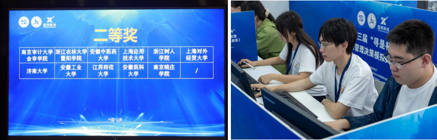 本次参赛团队由2021级行政管理专业王哲钰、鲍云凯、赵佳三位同学组成,唐志炜老师带队,季媛媛,时静担任指导老师。三位参赛成员基于前期的方案设计,在沙盘对抗实操环节中,协同配合开展模拟决策运营,体现了战略性、系统性分析问题和解决问题的能力,最终获得了二等奖的好成绩。