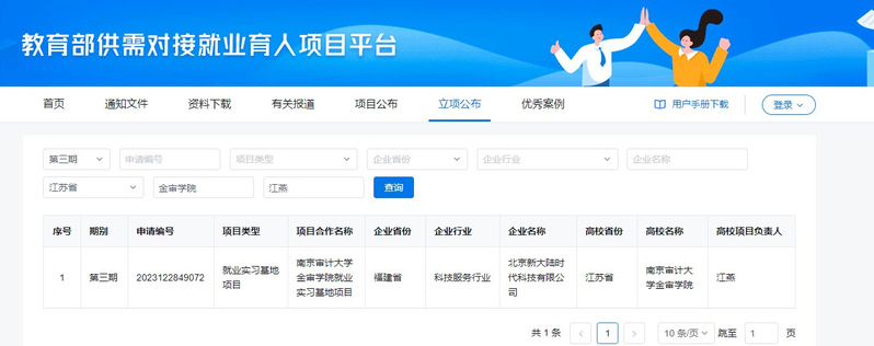 近日,全国普通高校毕业生就业创业指导委员会发布了《关于公布教育部第三期供需对接就业育人项目立项名单的通知》,信息学院计算机教研室江燕副教授申报的“南京审计大学金审学院就业实习基地项目”项目成功获批立项。
