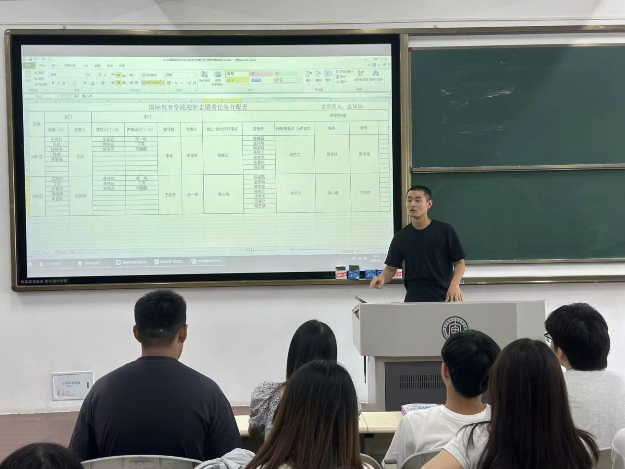 为了确保即将到来的新生报到活动顺利进行,9月5日中午在C中502教室我院召开了新生报到迎新工作会议,全面部署迎新工作。会议由国际教育学院党总支书记庄怀军书记、国际教育学院党总支副书记张弛老师、国际教育学院分团委学生会书记马浩杰老师主讲,团学全体成员及T3,院助志愿者们参加,就迎新工作流程、志愿者安排和后勤保障等事宜进行了详细讨论和安排。