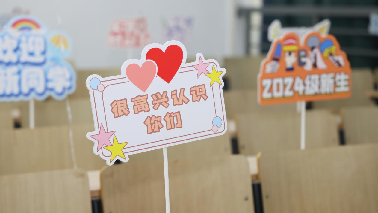 醒目清楚的指引牌,精心准备的欢迎横幅,在校门口等待多时的老师们和志愿者们,校园里的一切都事无巨细的准备着,只为告诉新同学们,“金审欢迎你”!