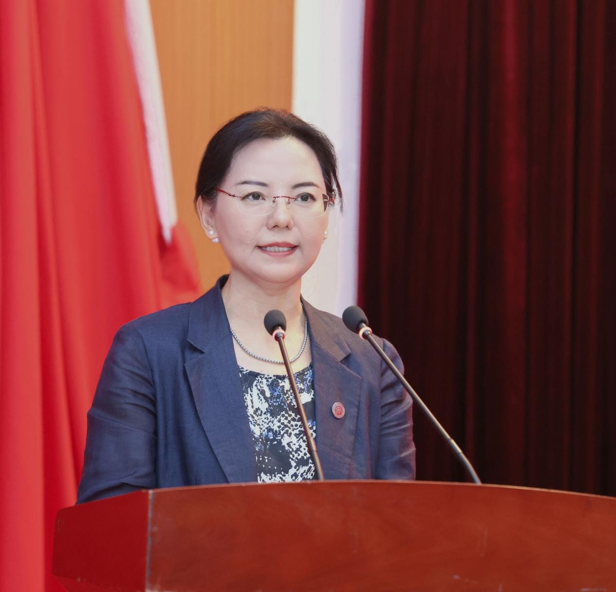 副理事长侯思画代表理事会向辛勤耕耘在教学、管理、服务工作一线,为学校发展倾注智慧和心血的全体教职工致以节日的问候和衷心的感谢;向躬耕金审,在教学、科研等方面取得突出成绩的集体和个人表示热烈的祝贺;向今年新加入金审大家庭的教职员工表示热烈的欢迎。侯思画号召全体金审教职员工大力弘扬教育家精神,坚定理想信念、陶冶道德情操、涵养扎实学识、勤修仁爱之心,做有情怀、有水平、有温度的好老师、大先生,用自己的行为示范做好学生的引路人,让学生在金审这个大家庭感受到更美好的成长与陪伴。