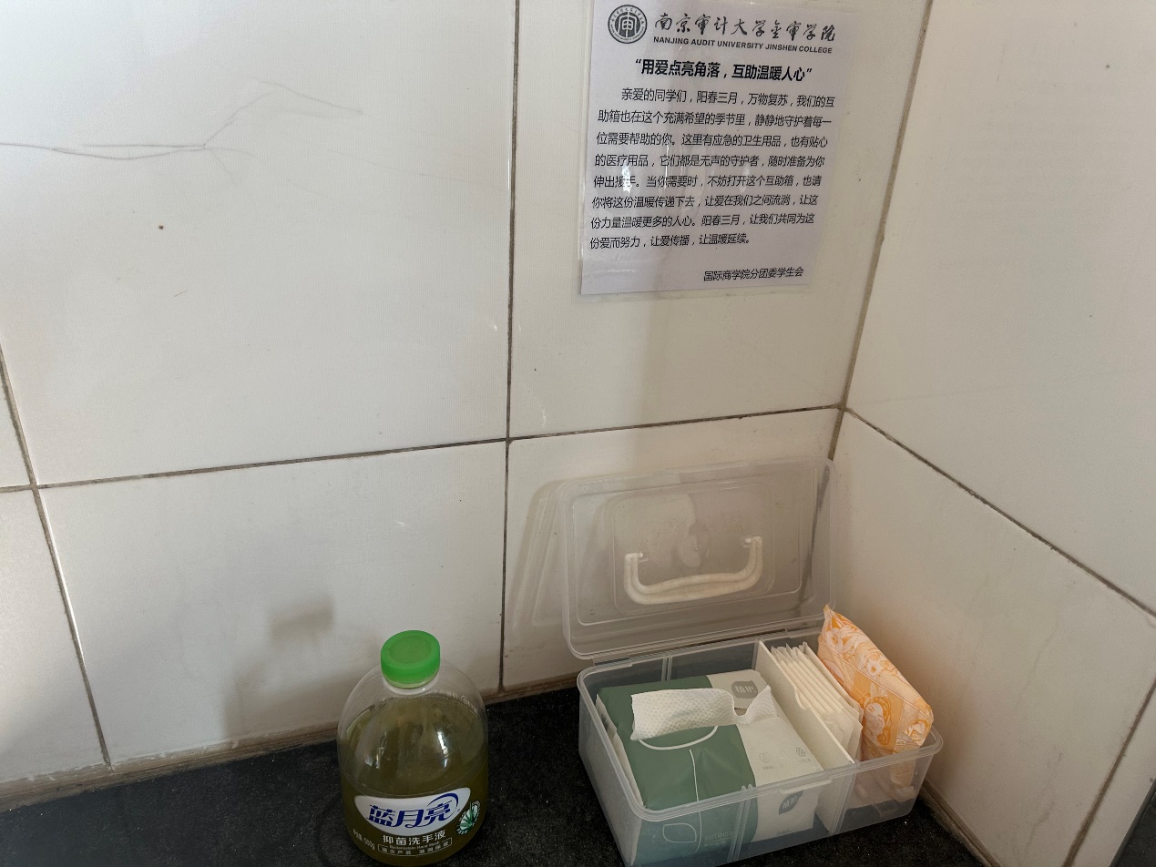 志工部的成员们在教学B楼卫生间内设置了多个互助箱,并配备了充足的卫生用品和医疗用品,以满足师生的紧急需求。此次互助箱活动的开展,不仅促进了校园内的互助与共享精神,还鼓励了学生们在日常生活中更加关注他人的需求,学会分享和给予,共同营造一个温馨、友爱的校园环境。