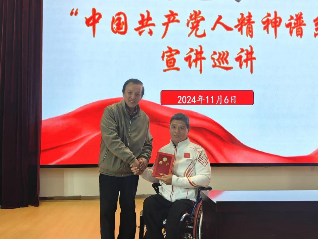 近日,南京审计大学金审学院举办“中国共产党人精神谱系”宣讲巡讲会活动。11月6日下午,原残奥会举重冠军、现江苏残疾人举重队主教练、国家残疾人举重集训队教练、江苏省残联肢残人协会主席张海东教练为大家带来“在自强中诠释自我”主题讲座。审计学院全体党员、入党积极分子、发展对象以及团学骨干参加本次讲座学习。他从自身经历出发,向全体师生展现了他自强不息、永不言弃的奥运精神。