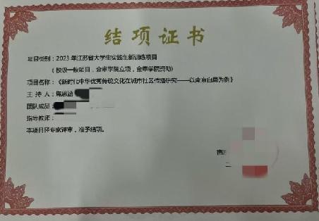 同时,也积极投身于学术研究,参加大学生创新创业训练项目。2023年主持了一项校级大创《新时代中华优秀传统文化在城市社区传播研究——以南京白局为例》,并成功结项,2024年主持申请了一项省级大创《“一带一路”倡议下企业国际化对ESG表现的研究》。