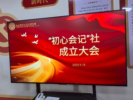 2025年9月19日,南京审计大学金审学院“初心会记”社成立会议暨首届会员会议,在C西506教室举行。会计学院党支部书记于璐、副院长周莎担任社团指导老师,首批社团成员悉数参会,共同为社团后续发展奠定基础。