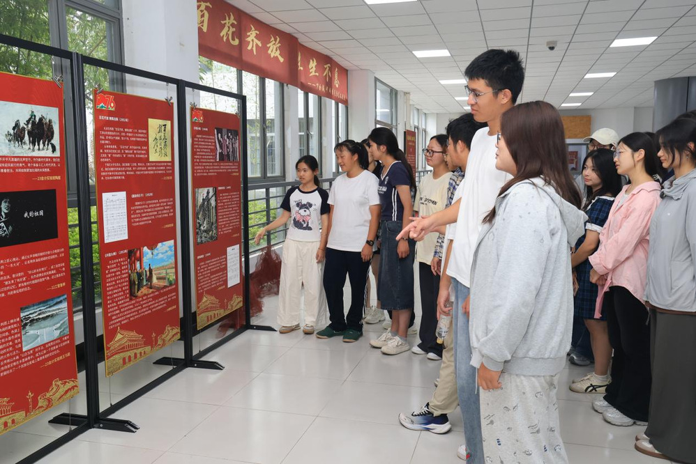 前来观展的师生驻足于一件件作品前,仔细阅读、聆听同学们的推荐阐释,深受触动。25学前周梓涵在观看后感慨道:“这个展览形式非常新颖,看到同学们自己推荐和解读的作品,感觉特别亲切,也特别能引起自己的共鸣。尤其是那些结合个人经历的阐释,让我从艺术中真切地感受到了国家发展的脉搏和一代代人的奋斗精神,这比单纯看作品介绍印象深多了。”教师教育学院田春等老师表示:“这不仅是一次美的享受,更是一次深刻的思想洗礼。同学们在主动参与策展和阐释的过程中,完成了从‘被动受教育’到‘主动思考与内化’的转变,这种‘润物细无声’的思政教育效果非常显著。” 现场浓厚的艺术氛围与深沉的家国情怀交织,引发了广泛的情感共鸣与思想认同。