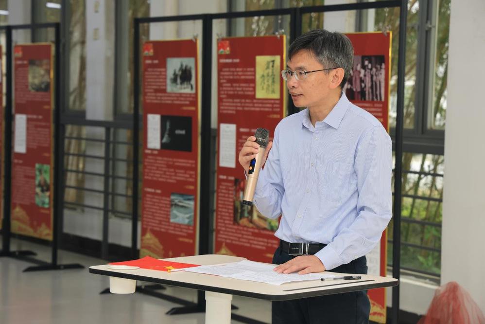 南京审计大学金审学院校长俞安平、党委书记王军、副校长王薇、校长助理孟琪璐等领导出席了开幕式。王军书记致开幕词,俞安平校长发表了热情洋溢的讲话,他充分肯定了本次展览是对全校师生进行爱国主义教育的生动教材,是学校深化五育融合模式的一次创新实践。