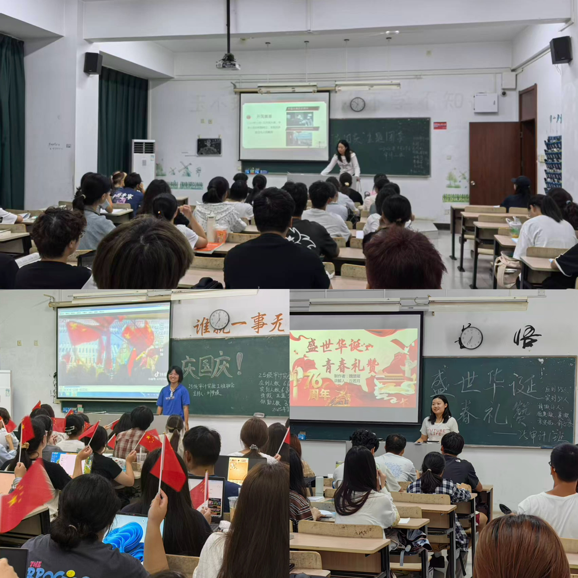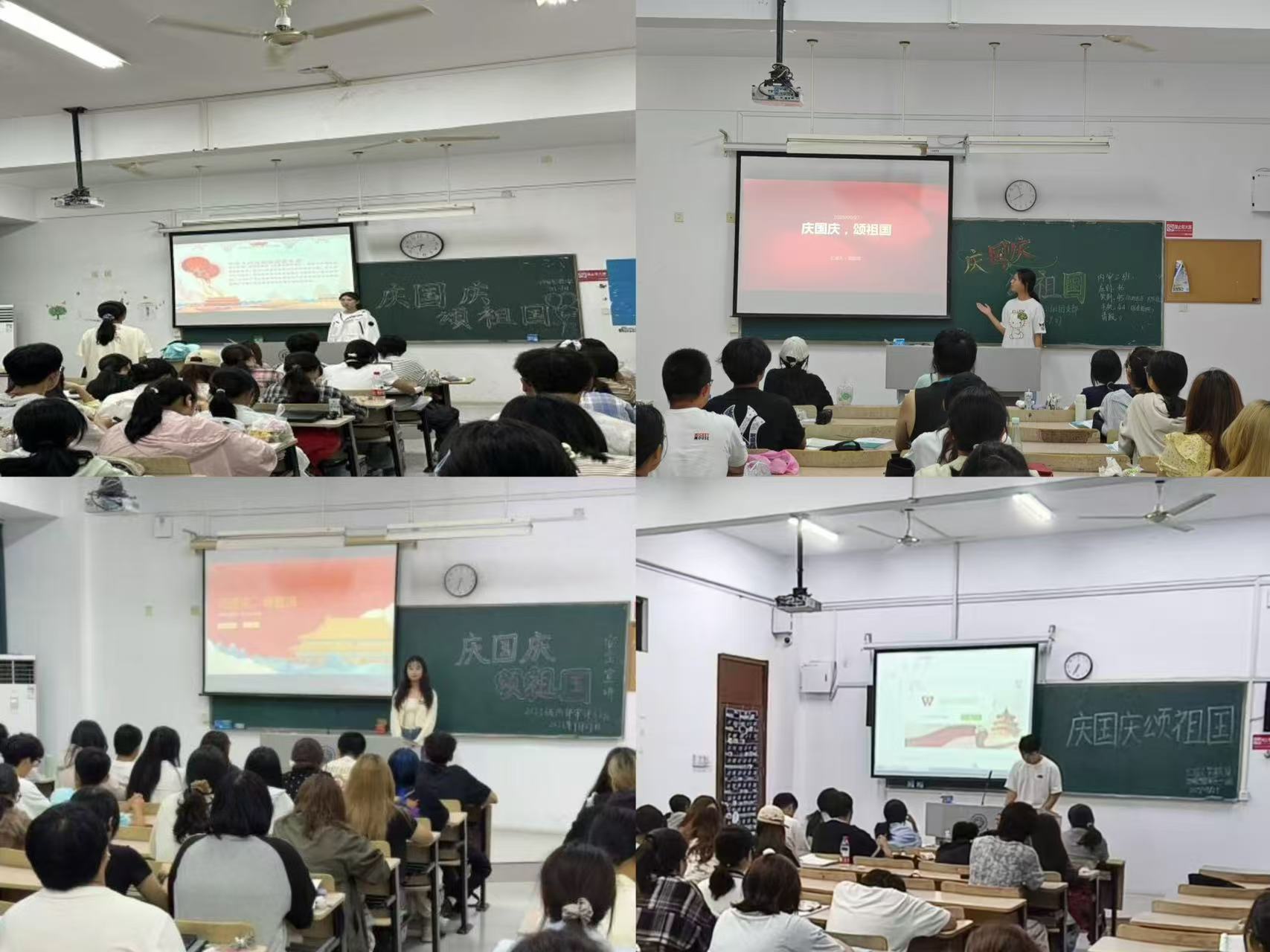 在中华人民共和国成立76周年之际,为弘扬爱国主义精神,增强学生假期安全意识,审计学院25级各班级于2025年9月27日分别组织开展了“庆国庆,颂祖国”主题班会暨节假日安全宣传活动。各班班会由班委主持,全体同学积极参与。
